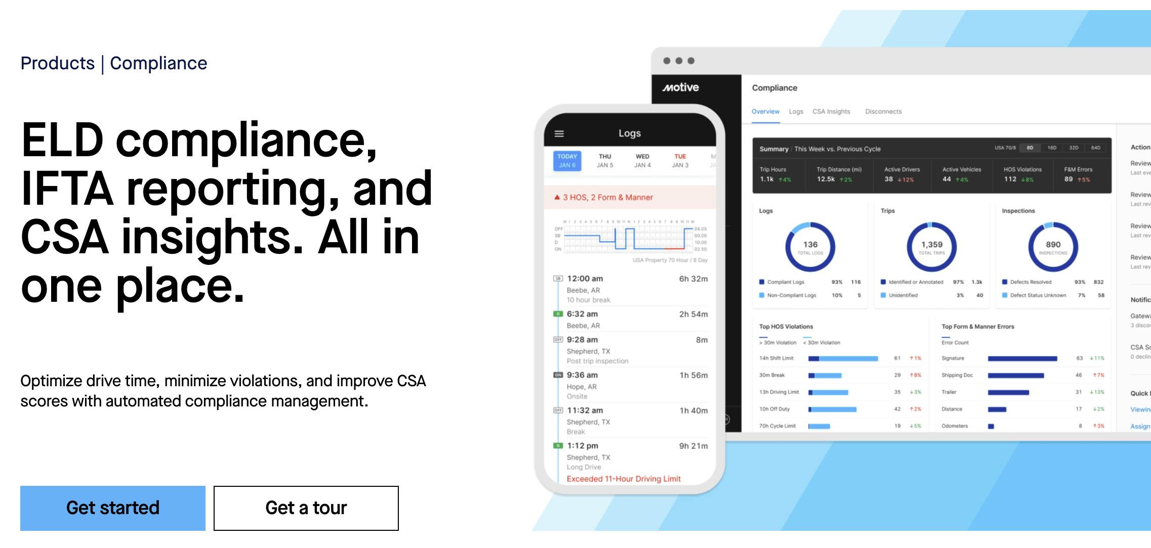 Motive's solution enables fleet operators to replace paper logbooks with electronic logging through integrated ELDs. This transition provides fleet managers with real-time insights into driver hours, therefore reducing manual data entry and mitigating the risk of errors.