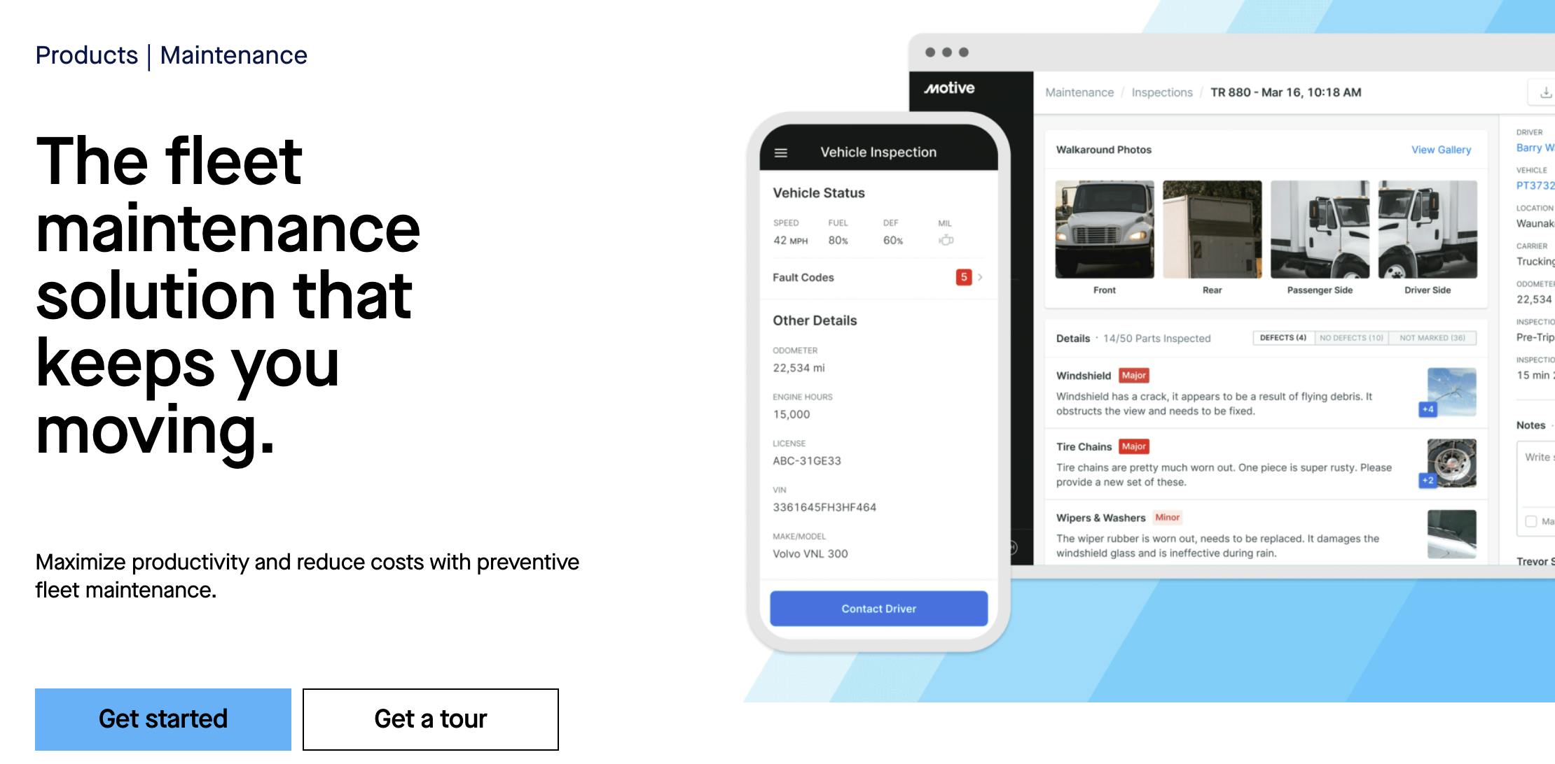 Motive's maintenance product assists fleet managers in scheduling and managing vehicle maintenance tasks. It provides alerts for maintenance requirements based on mileage, engine hours, and other parameters. By proactively addressing maintenance needs, fleet operators can reduce downtime, increase vehicle lifespan, and minimize costly repairs. It also allows for the creation of customized inspection forms, and all inspection records can be accessed and maintained electronically.