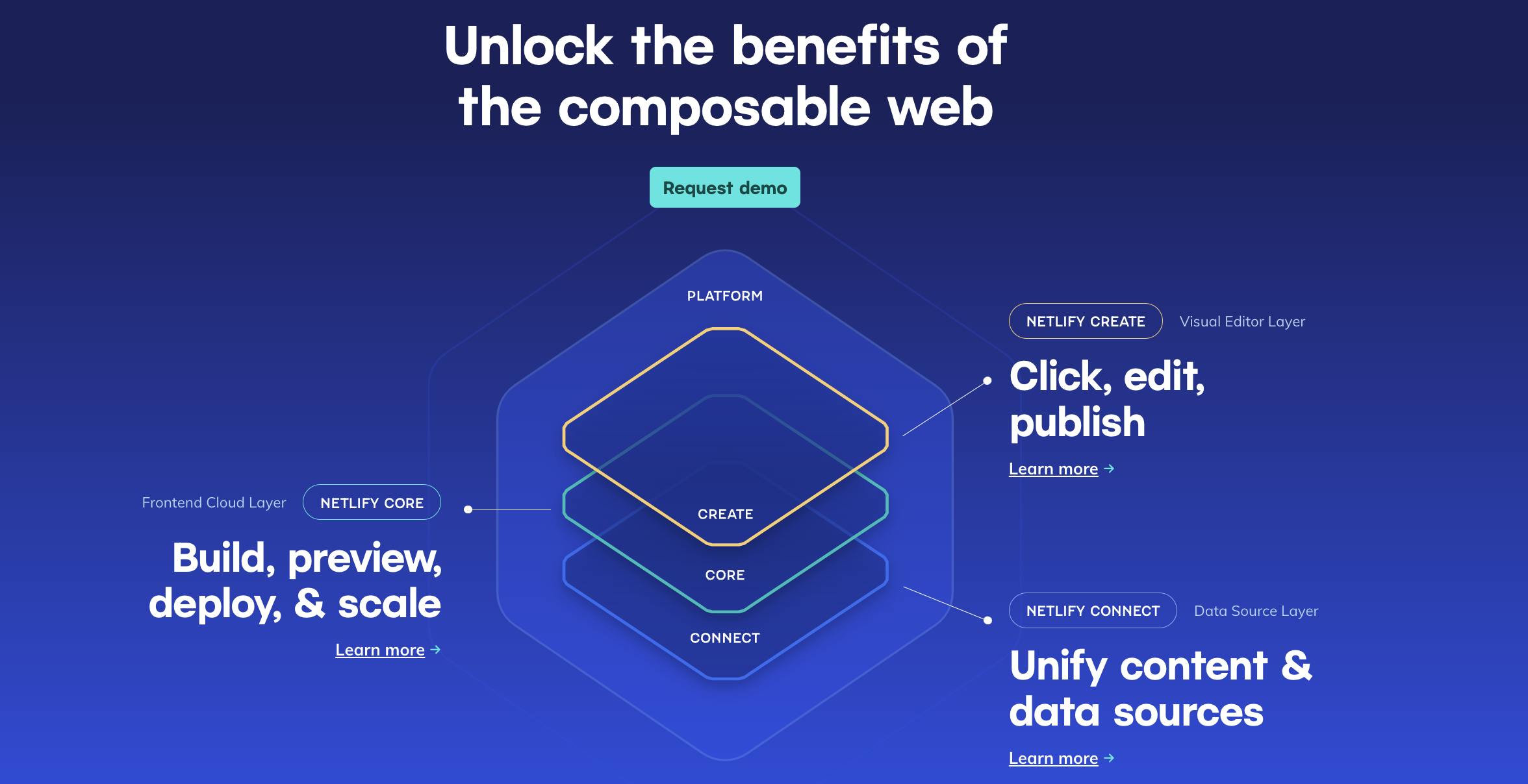 Since then, as its technology has evolved and expanded, the company has changed the way it describes itself to emphasize a composable architecture. Netlify has evolved into a composable cloud platform that helps developers build, deploy, and manage websites and web applications. It also hosts static websites, which are pre-built and don't require a server to run, which can make them faster, more secure, and easier to scale. Netlify also offers features like continuous deployment, serverless functions, content management integrations, and a global content delivery network (CDN), with use cases for both developers and non-technical users.