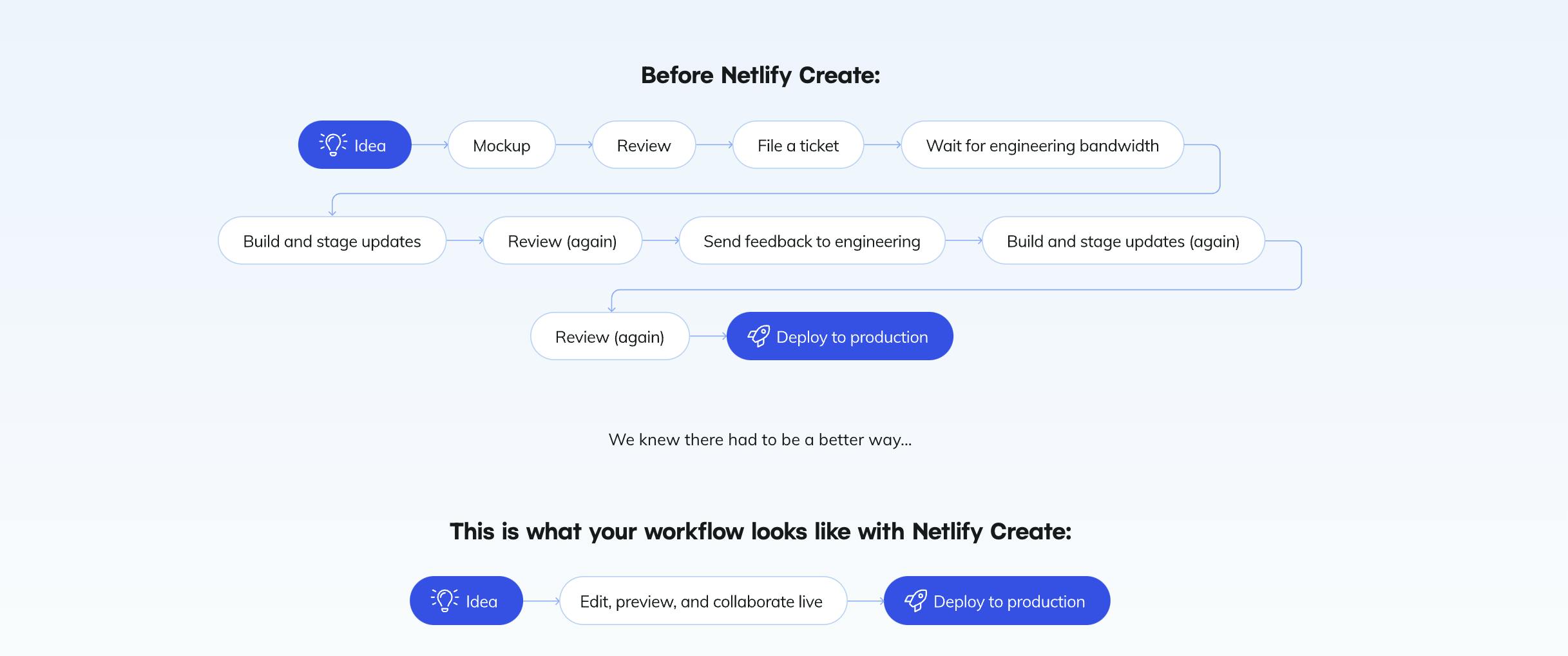 Netlify’s acquisition of Stackbit, “a company that provides a no-code visual interface for editing web pages and applications”, in June 2023 likely contributed towards its Create product.
