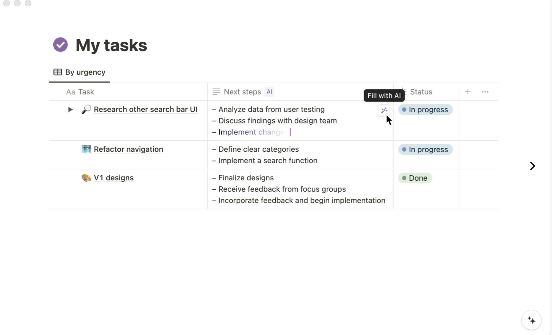 Notion’s autofill tool can use existing docs and write them into summaries of hundreds of docs, action items based on meeting notes, or generate insights and takeaways from call notes. It can also organize data into tables or databases.
