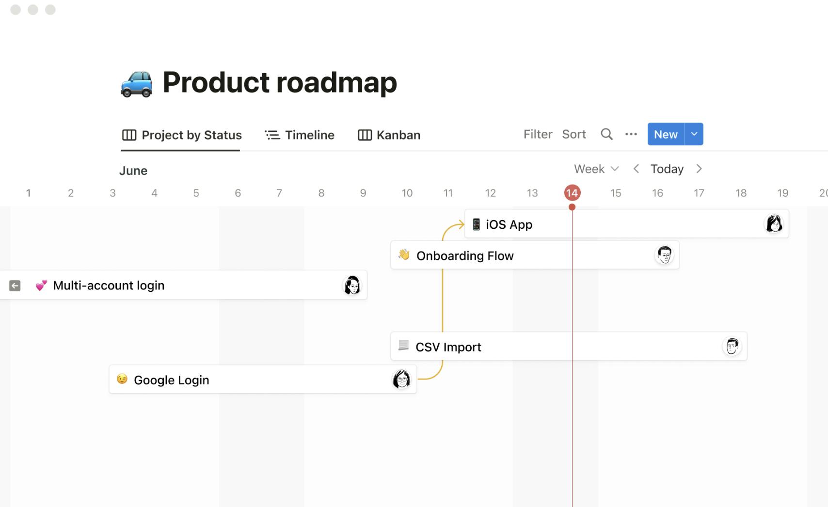 Notion Projects allows users to break projects down into smaller tasks and sub-tasks that can be assigned to different members of a Notion workspace and that can be given a status and due date. Projects can be visualized in several ways, including a Kanban view, a database view, and a calendar view. Individual users can also filter tasks that are relevant to them, and particular projects can be given progress bars to visualize the status of a project.