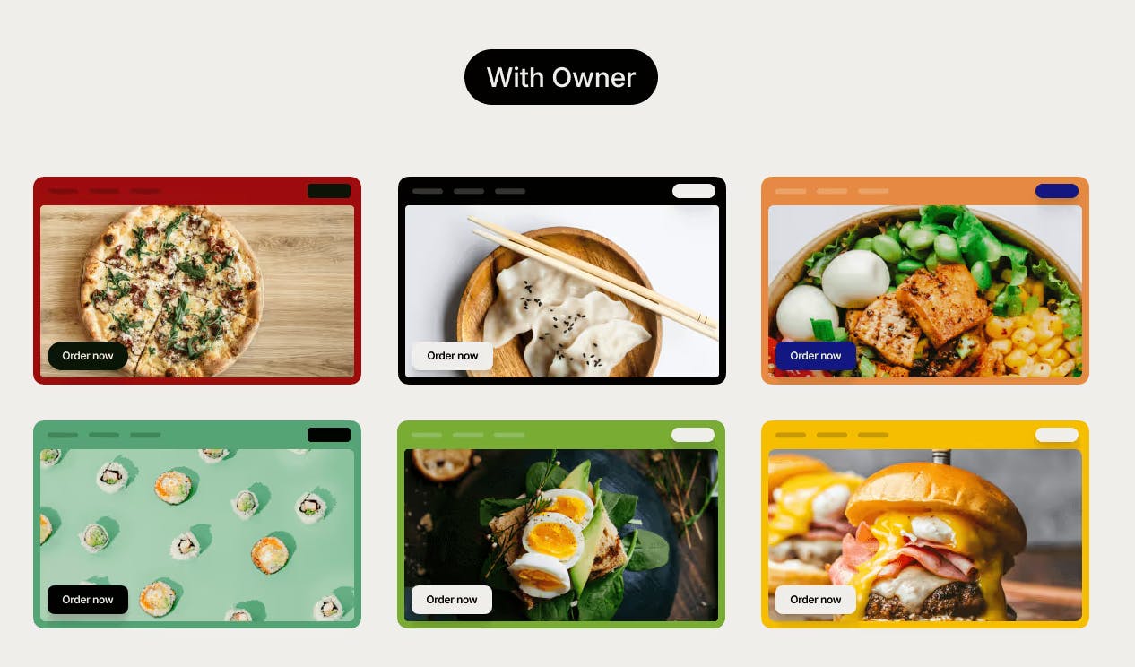 Owner’s standard templates are meant to be simple and emphasize online ordering, with buttons on the top right and in the center.