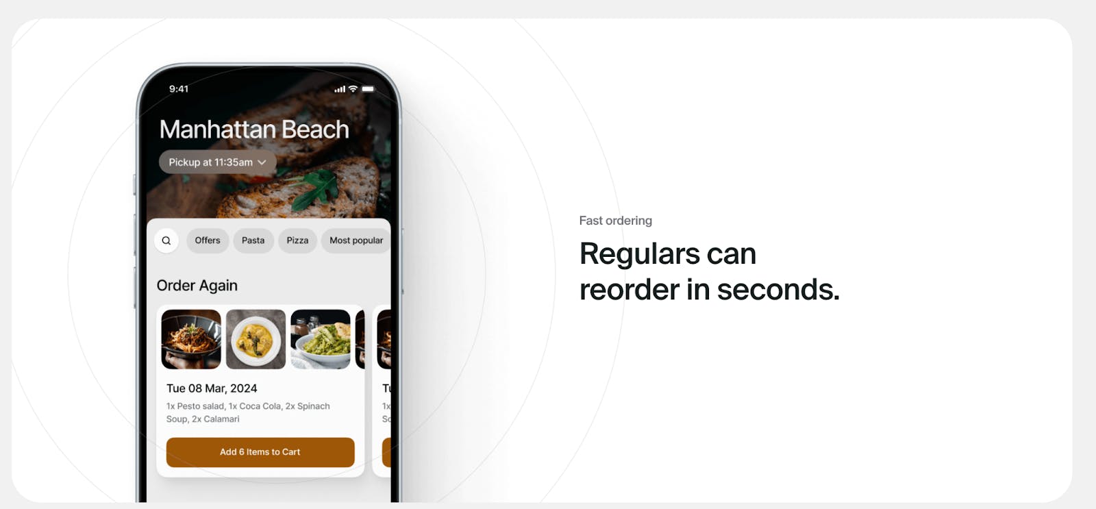For no extra cost, Owner produces a branded mobile app for each restaurant (iOS and Android). Similar to other products, Owner allows for some brand personalization but uses a standardized experience based on what it says works. Owner reports that having a branded app doubles the reorder rate of a restaurant’s customers on average.