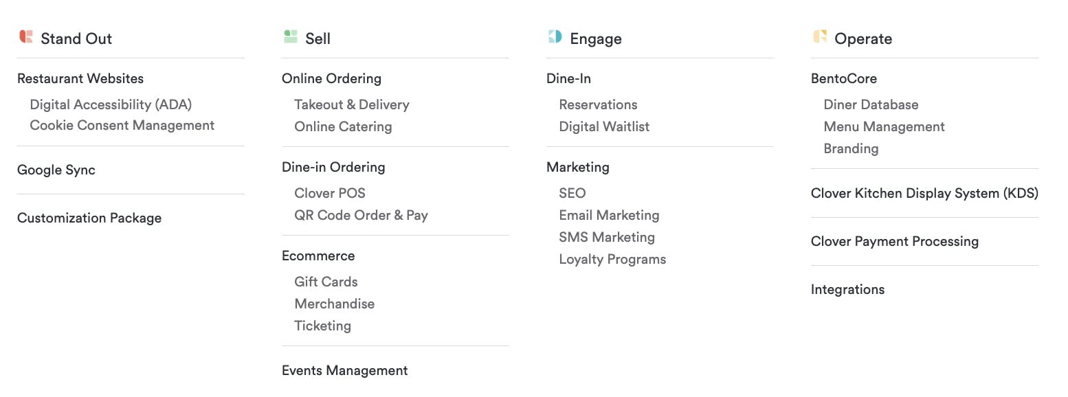 Other POS competitors are also adding similar features. Fiserv, the parent company of the POS company Clover, acquired the restaurant website and marketing platform BentoBox in November 2021 to bolster Clover’s digital ordering and marketing capabilities. The deal integrated BentoBox’s website builder, online ordering, and marketing tools into Clover’s POS and restaurant operations platform.