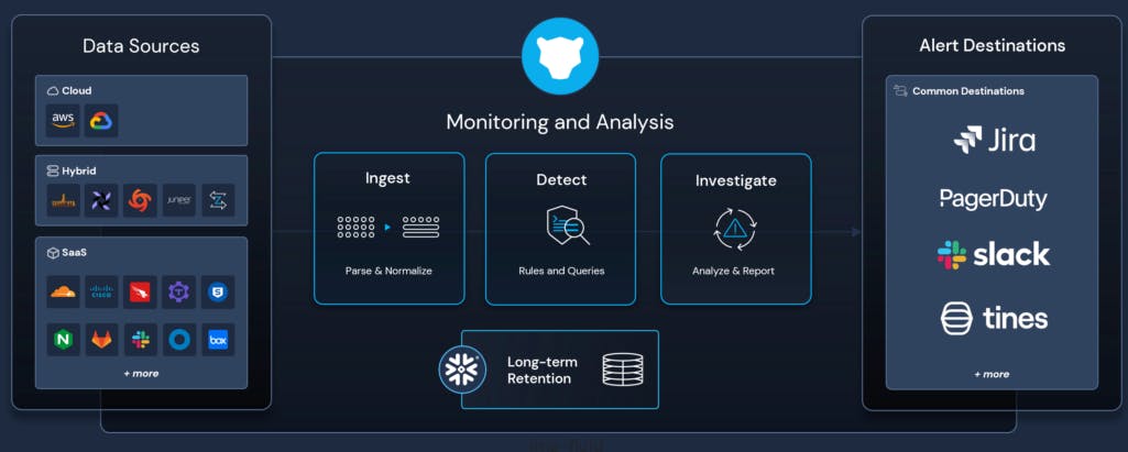 Analysis: There are over 100+ built-in policies that help security to write Python or SQL to analyze security logs and data.
