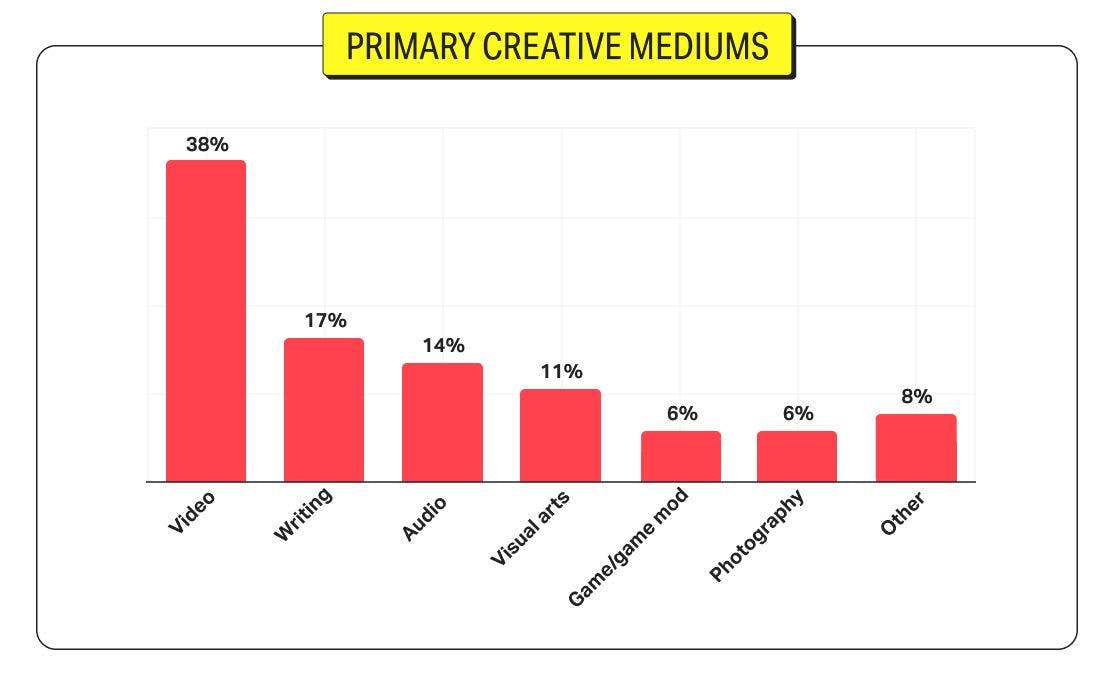 Patreon's customers come in two categories: creators who want an income from their work, and supporters willing to pay for exclusive content or to support the creators they love. The company's reach spans different industries, including music, podcasting, visual arts, writing, gaming, and more. A 2022 survey of Patreon creators revealed that most creators on the platform make videos.