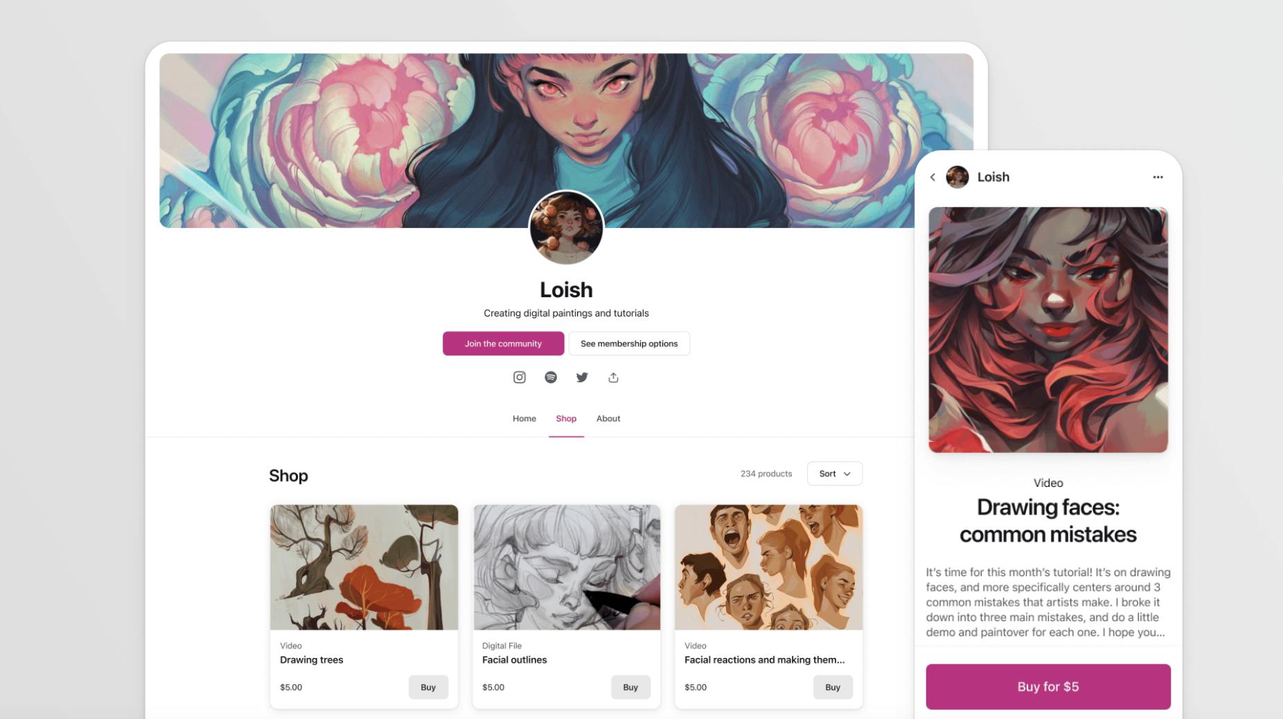 Membership tiers: Allows creators to offer various membership tiers to patrons, each with different prices and benefits. Patrons can also try out creator pages for free for a limited time before they commit.
