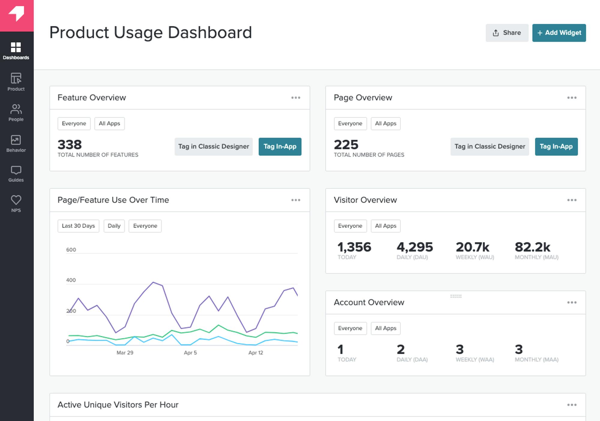 Pendo is a comprehensive product experience platform that allows companies to combine software usage analytics with in-app guidance and user feedback, enabling teams to deliver better product experiences to their customers. It allows companies to analyze where customers find the most value in their products, prioritize roadmaps, collect feedback, and onboard users.