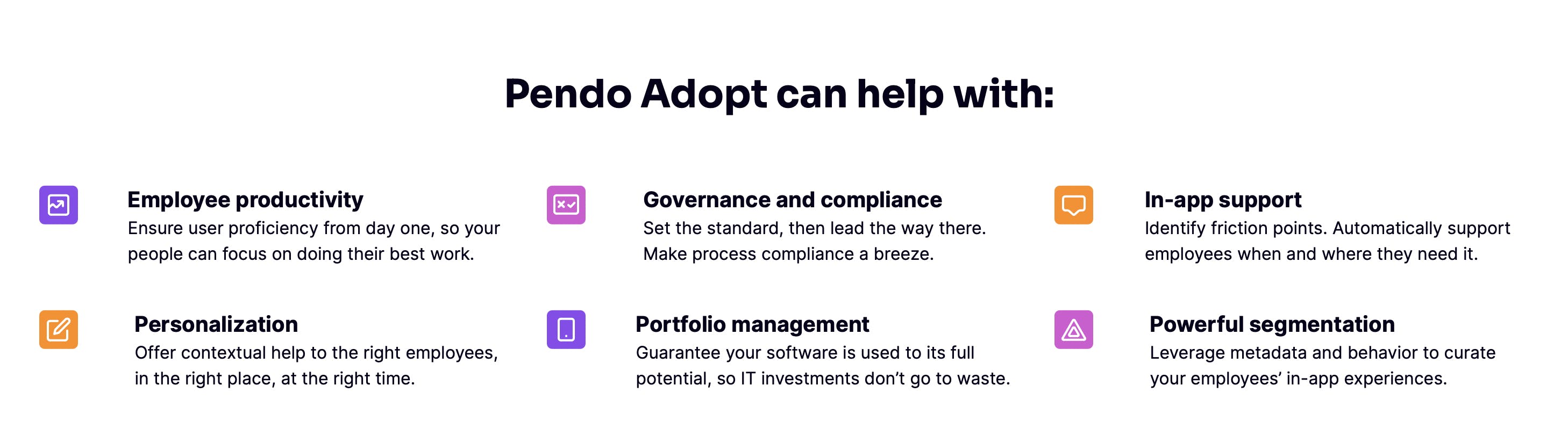 Pendo Adopt helps companies better understand how employees are using workplace software and take action to increase employee productivity. It was launched in February 2022.