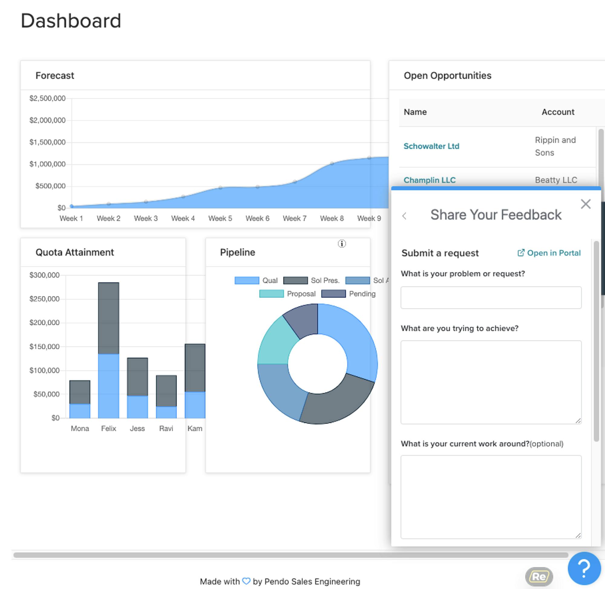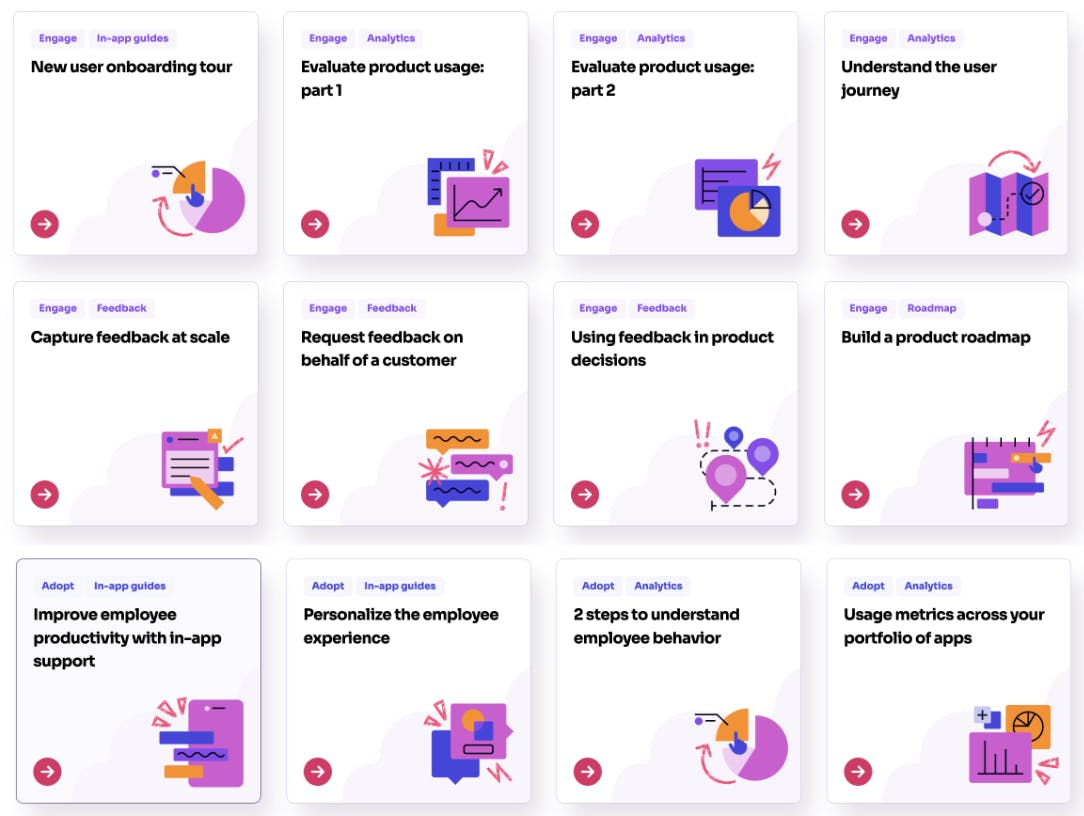 This Pendo feature allows companies to request feedback at scale. Feedback can be collected and analyzed based on segment, spending, and tags. Users can be automatically updated as requests are reviewed by the appropriate product teams. Integrating Jira, Salesforce, or other third party tools can create more comprehensive feedback stacks. Pendo Feedback can be external-facing to users, or business teams can use it to submit requests on behalf of users. This integrates Analytics and In-App Guides, so all three products can work together.