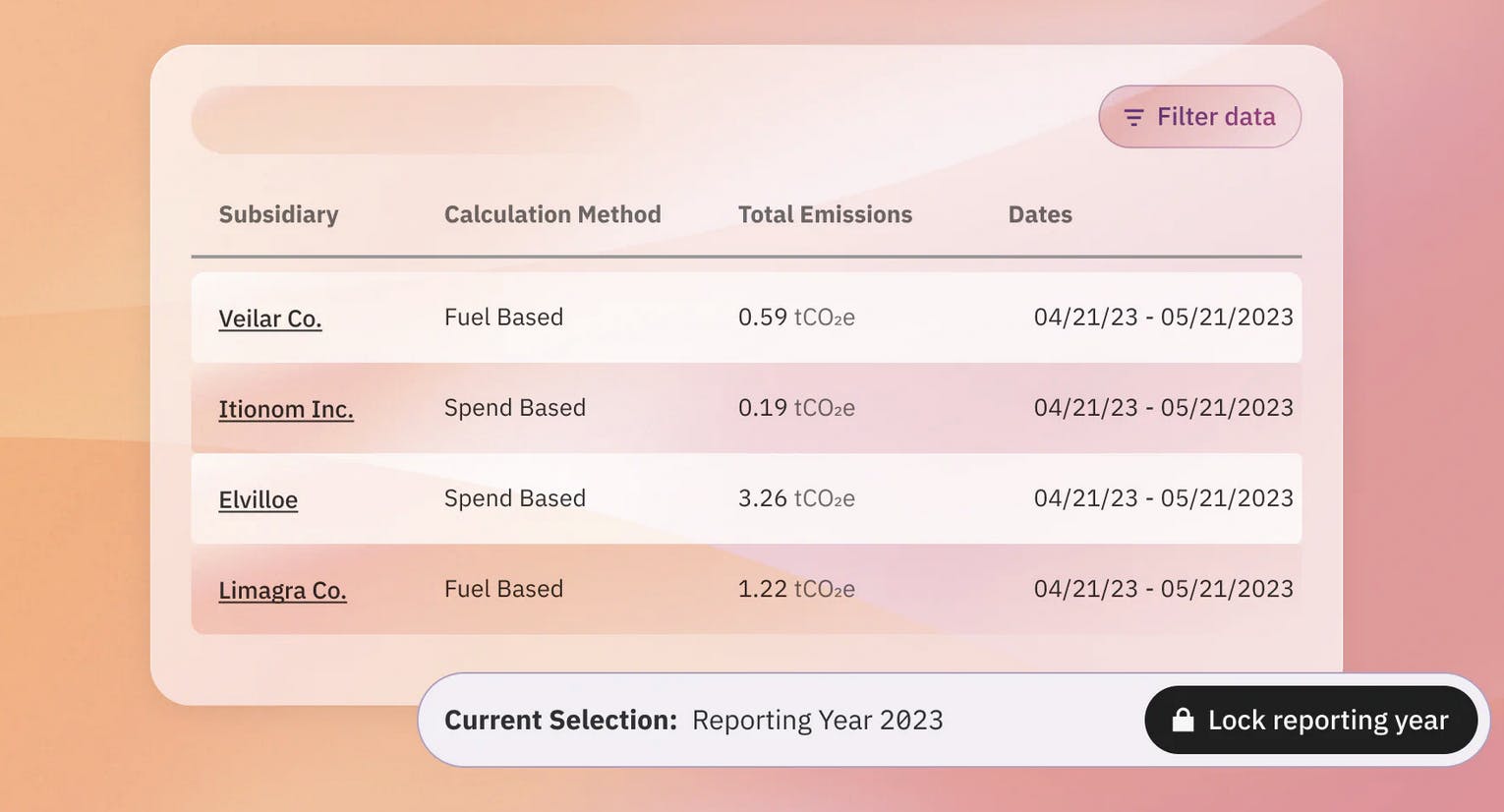 Data aggregation is a crucial pain point for companies because many don’t know what data sources are worth gathering. Even if they do know, sometimes data is not available. Even if a company is capable of gathering its own critical information, its logistics vendors may not be, which creates a blind spot for the company. Persefoni fills the information gap by identifying critical data to gather and filling in any data gaps with industry averages. For instance, Persefoni can use industry averages for logistics companies if a vendor does not use physical sensors to create accurate estimates.