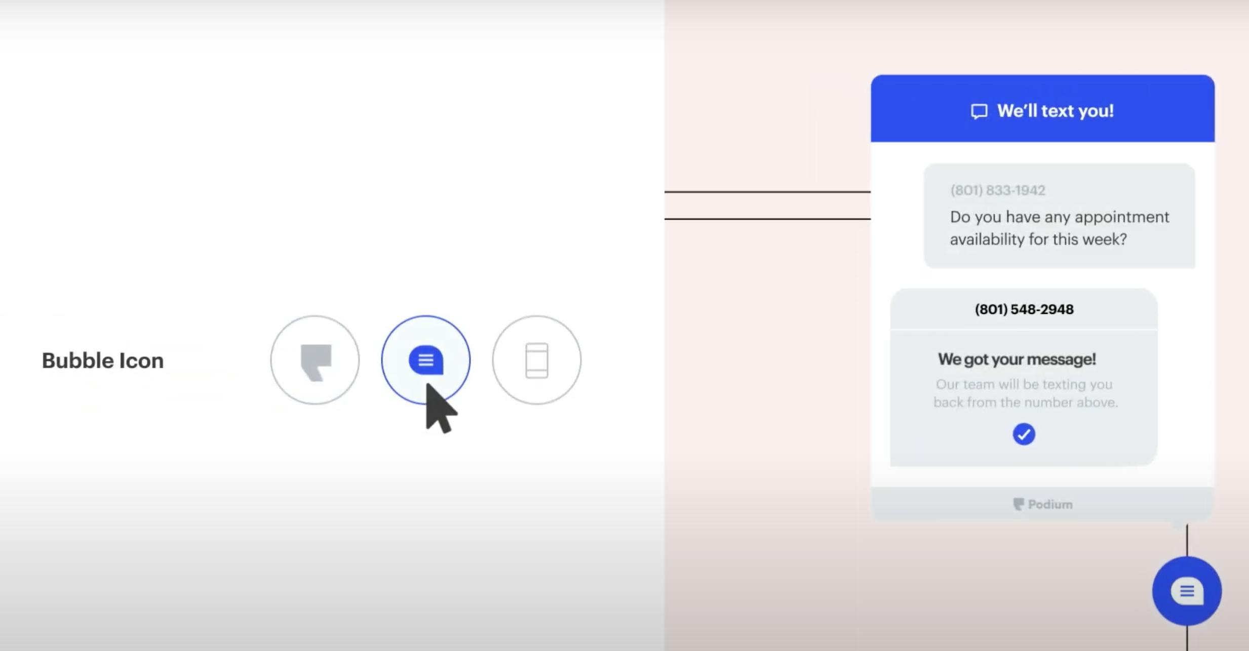 Podium provides businesses with a webchat feature that can be embedded on their websites. This feature enables customers to initiate conversations with the business directly on the website for customer engagement and support. Podium says that Webchat enables businesses to generate “up to 11x more inbound leads” from their websites by helping businesses connect with their customers and collect information on leads. Webchat conversations can be managed from the same inbox as other Podium features, such as text marketing.