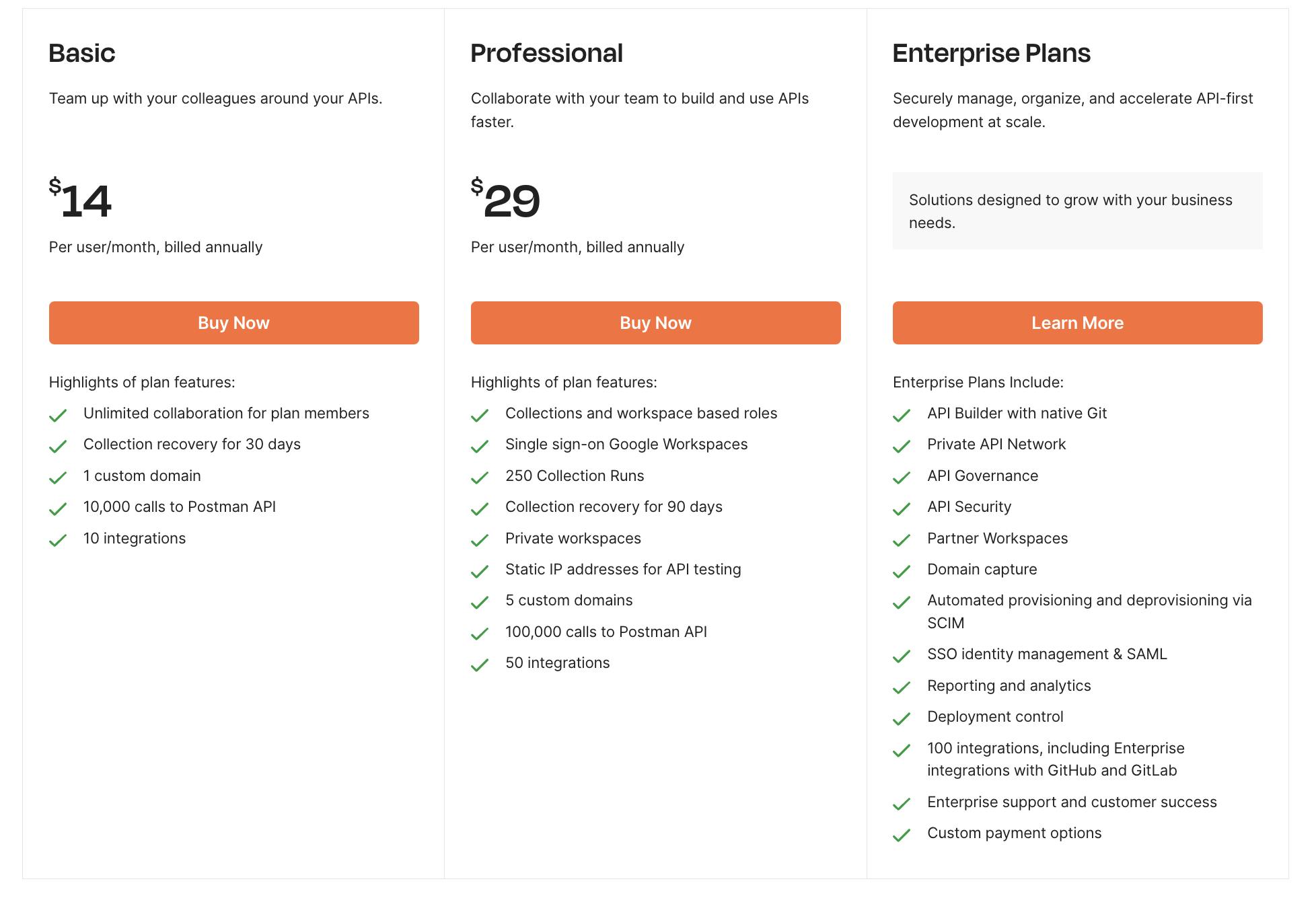 Postman's business model is primarily based on a freemium model, where the basic service is free to use, but paid plans are available for organizations that require additional features and functionality. Postman offers three different paid plans: Team, Business, and Enterprise, with prices starting at $168 annually. The free plan has limited features, while the paid plans offer additional features such as collaboration, version control, and advanced monitoring. Postman's paid plans are designed for teams of any size, from small startups to large enterprises.