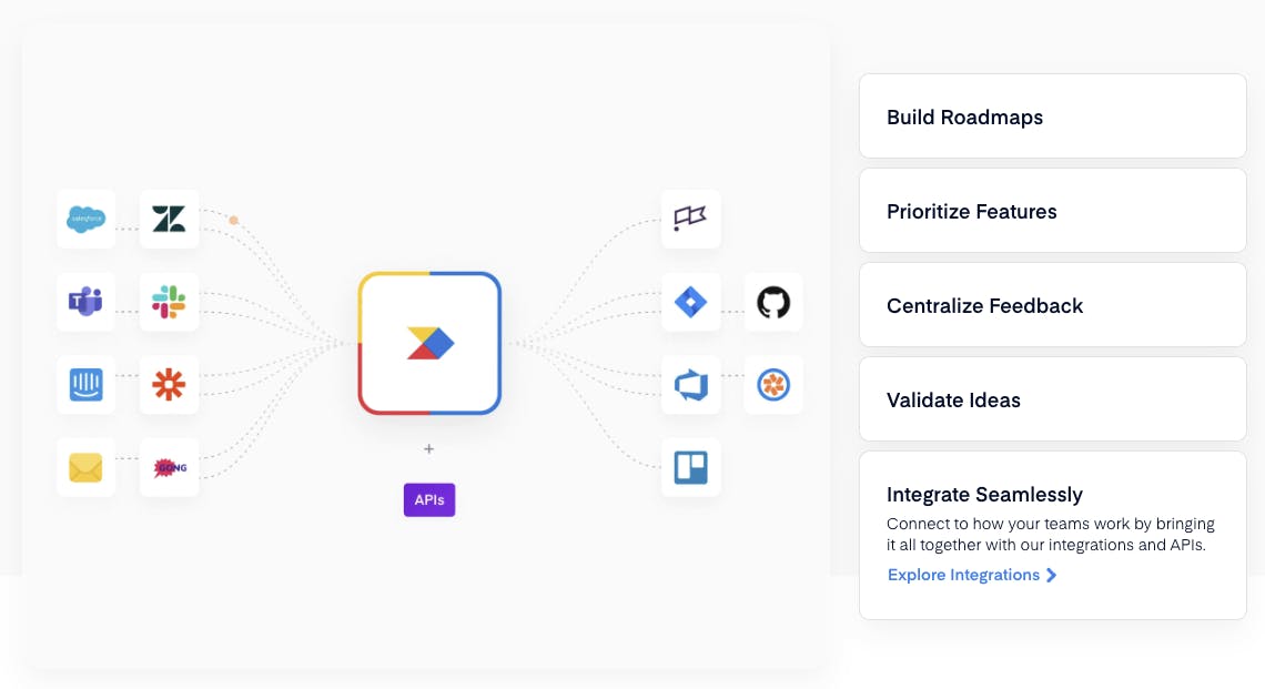 Productboard supports a number of collaboration and delivery integrations, as well as open APIs. Notable integrations available as of January 2024 include Slack, Microsoft Teams, Salesforce, Zendesk, Intercom, Zapier, and Mixpanel, among others. By allowing users to import customer data from CRMs, issue resolution, support systems, and sales and customer tooling, Productboard’s platform aggregates external feedback for a full 360 picture of what each company and segment’s customers are looking for.