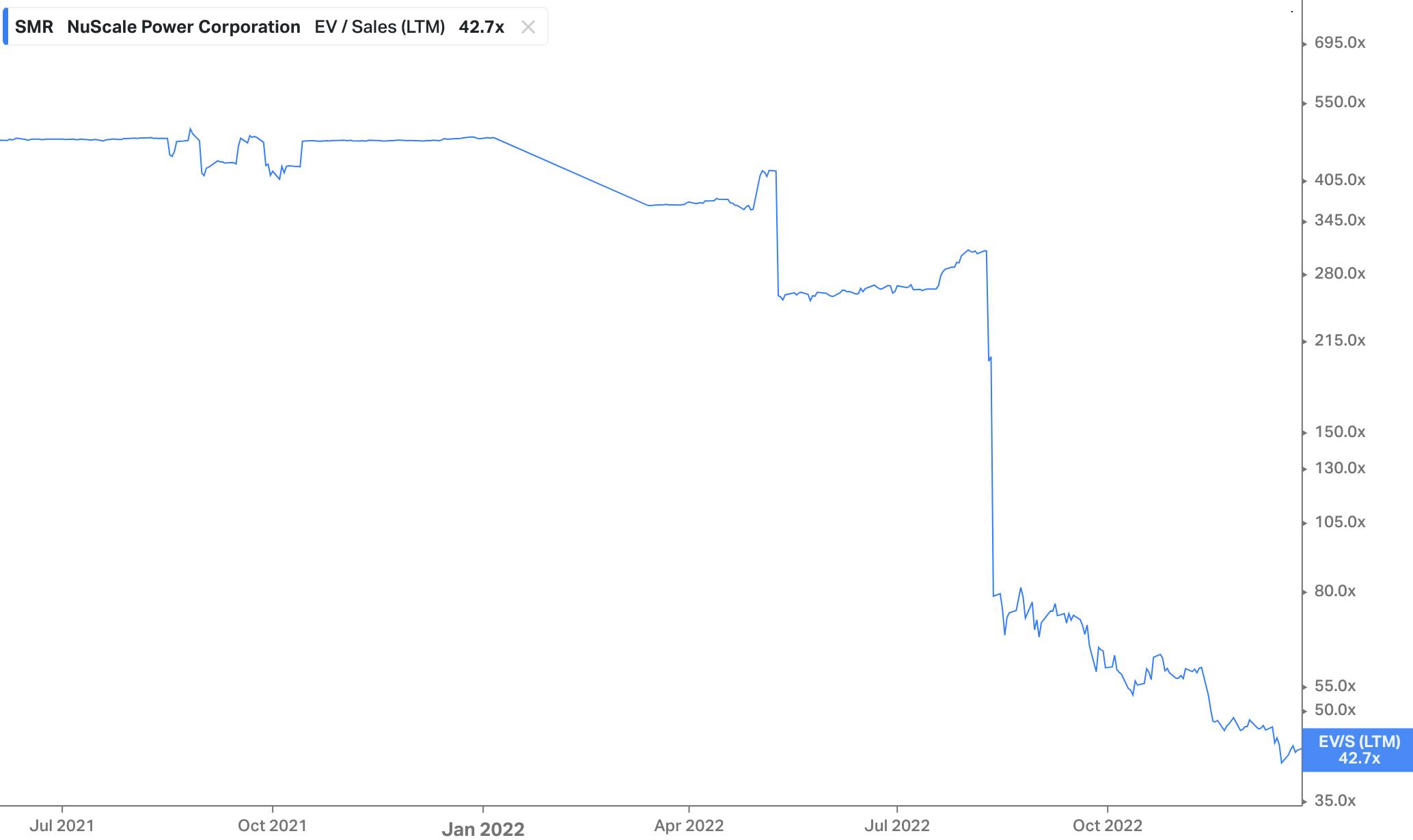 For comparison, NuScale, a publicly-traded SMR developer, was trading at around 42x revenue multiple as of April 2024.