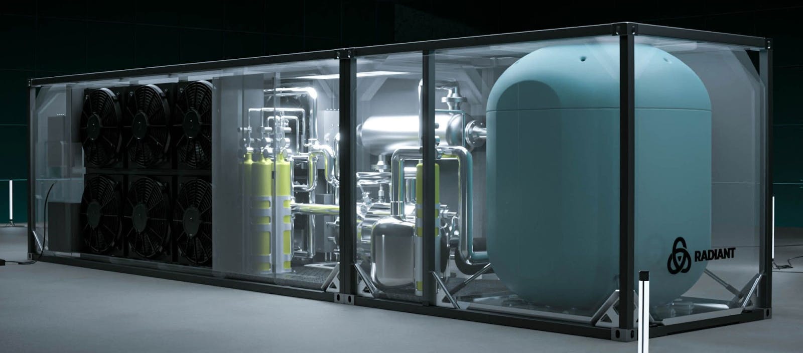 Radiant builds portable nuclear microreactors that are intended to replace diesel generators in “remote villages” and to provide “resilient backup power for hospitals, data centers, and military installations. The Kaleidos, Radiant’s first product, is designed to produce 1.9 MW of thermal power “for facility heating or water desalination”, and generates 1M of electric power. It is also designed to fit in a shipping container for ease of transport.