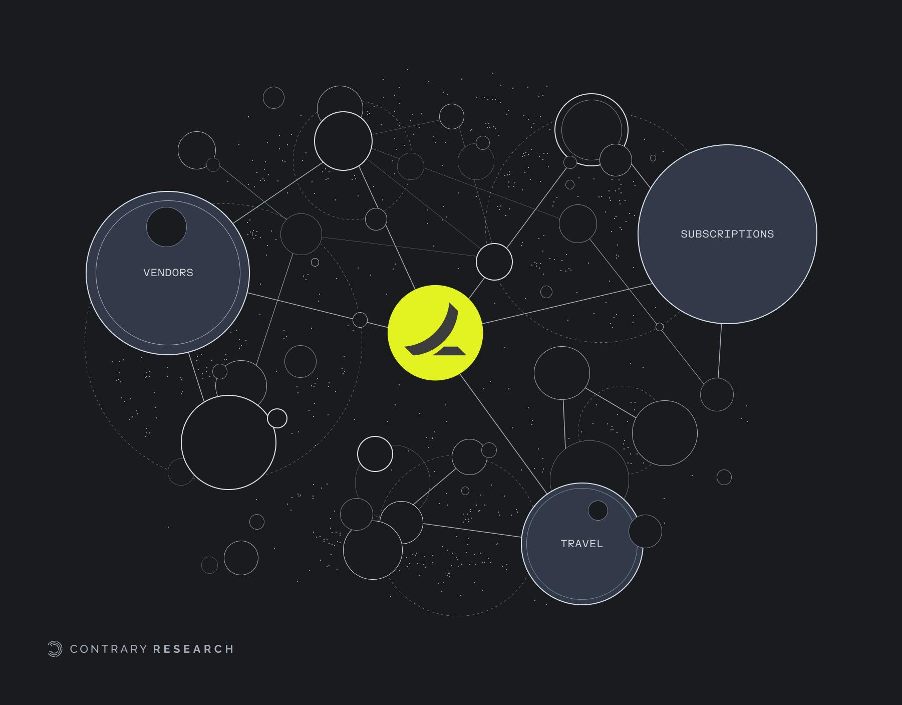 Every transaction over the course of a company’s life represents a massive web, from paying for the smallest box of paper clips to multimillion-dollar vendor deals. When thinking about Ramp’s product vision, it's necessary to go deeper than simply looking at the Ramp card through which some of those transactions flow. Ramp's vision is to become the center of gravity in a company’s transaction layer and leverage that position to identify every meaningful node within each customer.