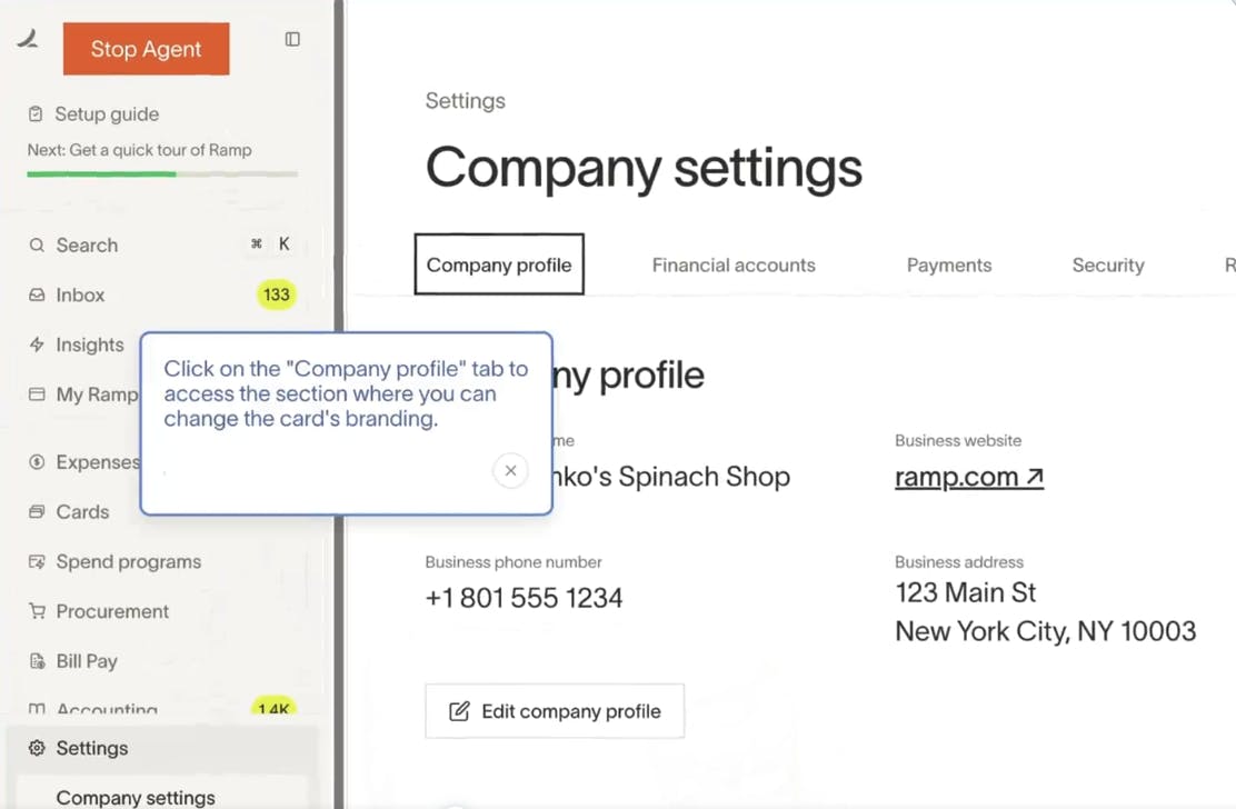 In May 2024, Ramp announced the forthcoming launch of Ramp Tour Guide, which is an AI agent that will educate customers on how to navigate and accomplish their tasks. Users can prompt the tour guide with a question and navigational elements will appear across the platform to navigate users to their desired results. This feature is built on top of OpenAI’s GPT-4o model.