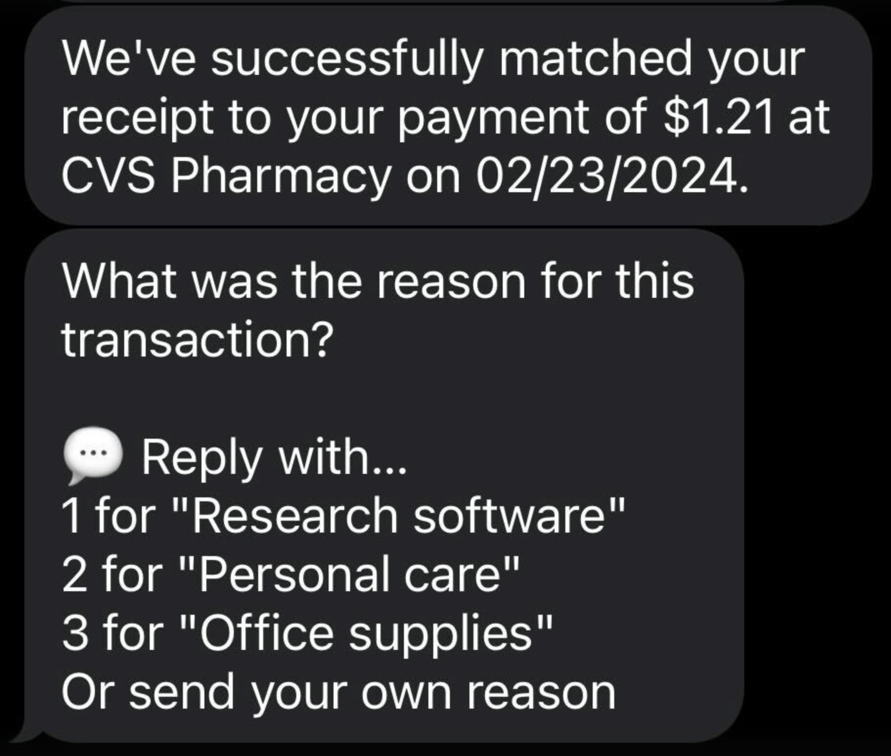 A feature launched in Q1 2024 and in beta as of May 2024 is that using Ramp Intelligence, Ramp will automatically suggest a few memos via SMS that users can select from under specific conditions.