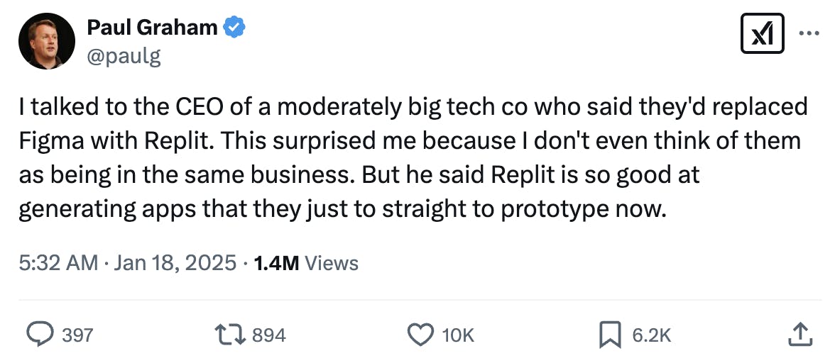 As Replit’s product has evolved its target customer has as well. In the past, Replit has been a popular tool among young people learning to build software. In December 2021, 50% of Replit’s users were under 18 and new to coding, while 80% were outside the US. While Replit can still serve those users, there was always a question of whether Replit would ultimately have to address professional software engineers in order to build a large business. In January 2025, Amjad made clear where Replit is focused, and where it's not, saying “we don’t care about professional coders anymore.”