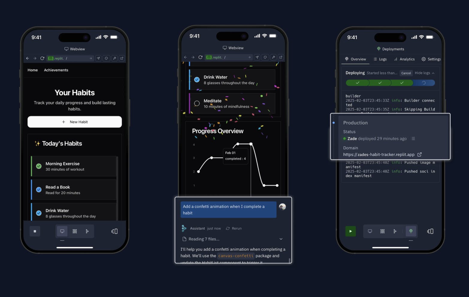 Replit’s product has evolved over the years in pursuit of a specific mission to “enable the next billion software creators.” From building collaborative in-browser coding environments to code explanation via early AI tools like Ghostwriter to network-based bounties to get help writing code; each aspect of Replit’s product over the years has been focused on making the process of creating software as frictionless as possible. As of February 2025, that journey has resulted in a software development platform with AI at its center and a fairly broad set of use cases it can address.