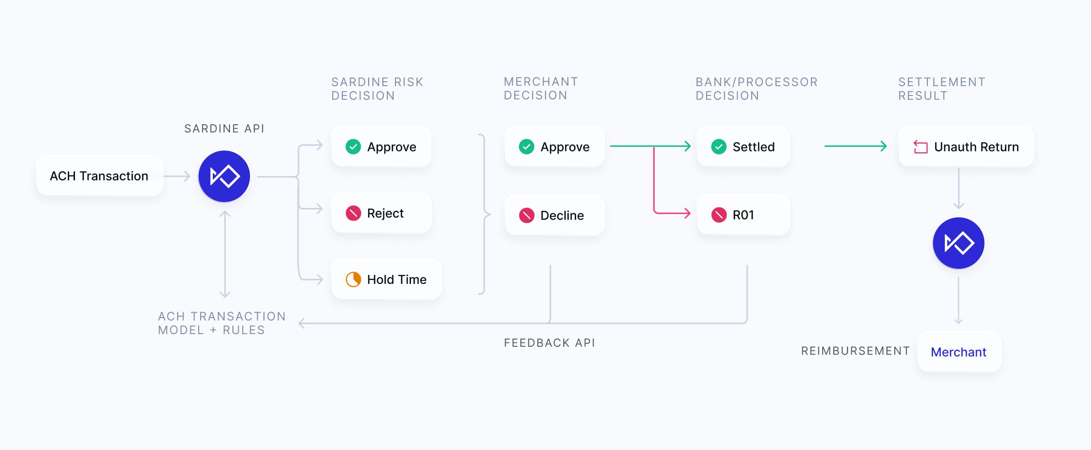 Sardine offers an instant ACH payments solution and applied fraud algorithms to enable fintech platforms and exchanges to overcome ACH settlement windows, which allows for instant availability of funds. It does this by taking on the fraud risk itself, “fronting” the money needed to make funds instantly available for the end users and covering the platform for any losses that it might otherwise incur if the ACH deposit doesn’t settle.