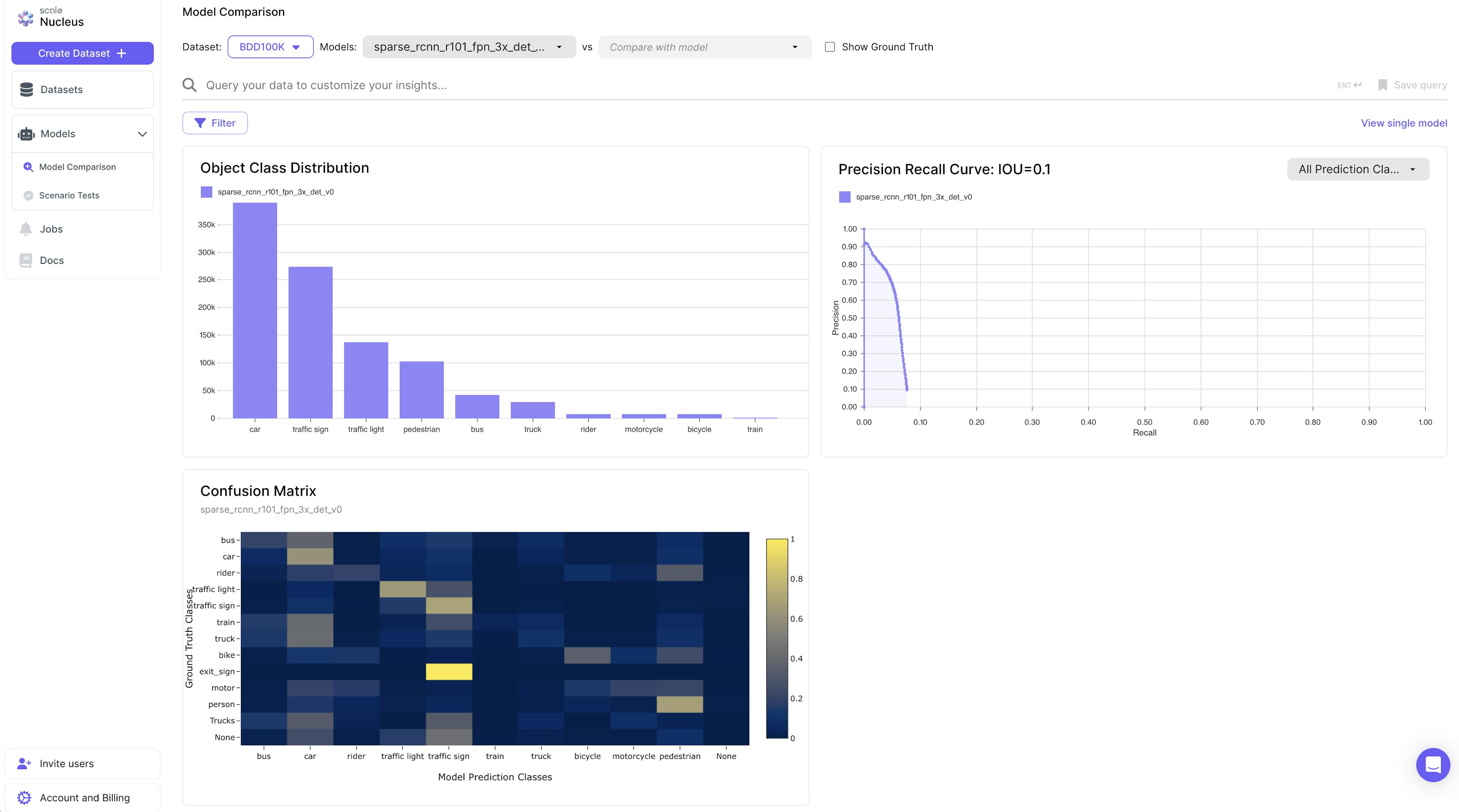 In August 2020, Scale AI launched Nucleus, a “data debugging SaaS product.” Nucleus provides advanced tooling for understanding, visualizing, curating, and collaborating on a company’s data, allowing teams to build better ML models. Specifically, Nucleus allows for data exploration, debugging of bad labels, comparing accuracy metrics of different versions of ML models, and finding failure cases. This product offering also falls under the Scale Data Engine offering.