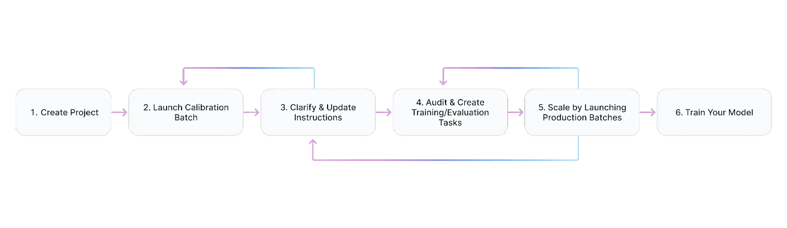Launch a Calibration Batch: This batch is reviewed by Scale labelers who provide feedback on the instructions and deliver the first set of task responses. This step helps identify discrepancies between the instructions and the task responses, allowing the user to refine their instructions.