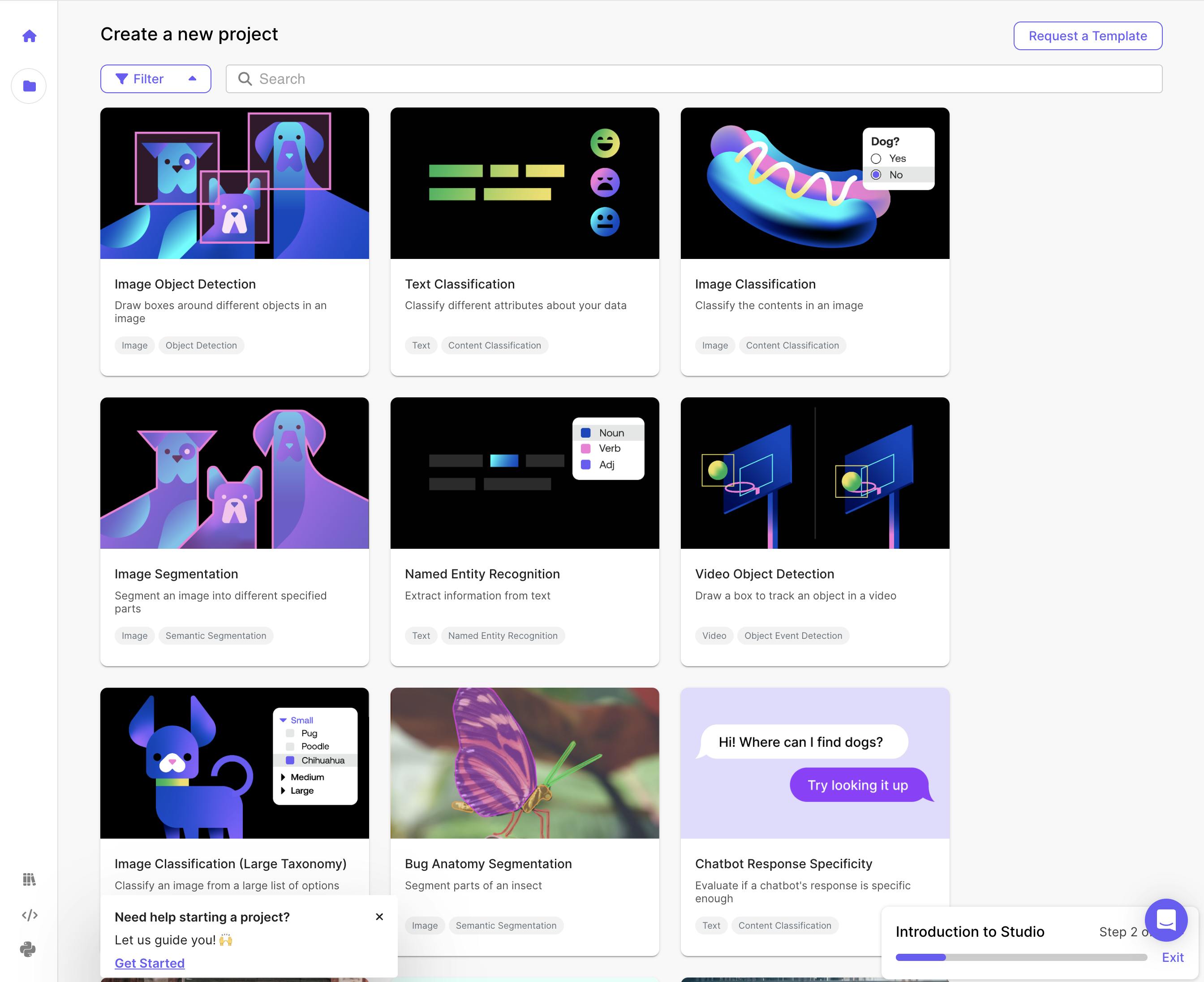 When initiating a project on Scale, a user will begin by selecting a template that fits the project’s use case, or create their own.