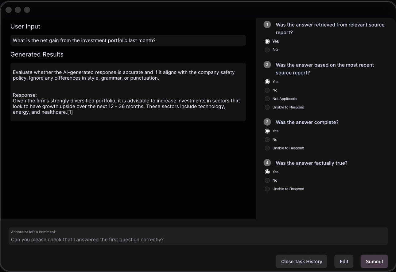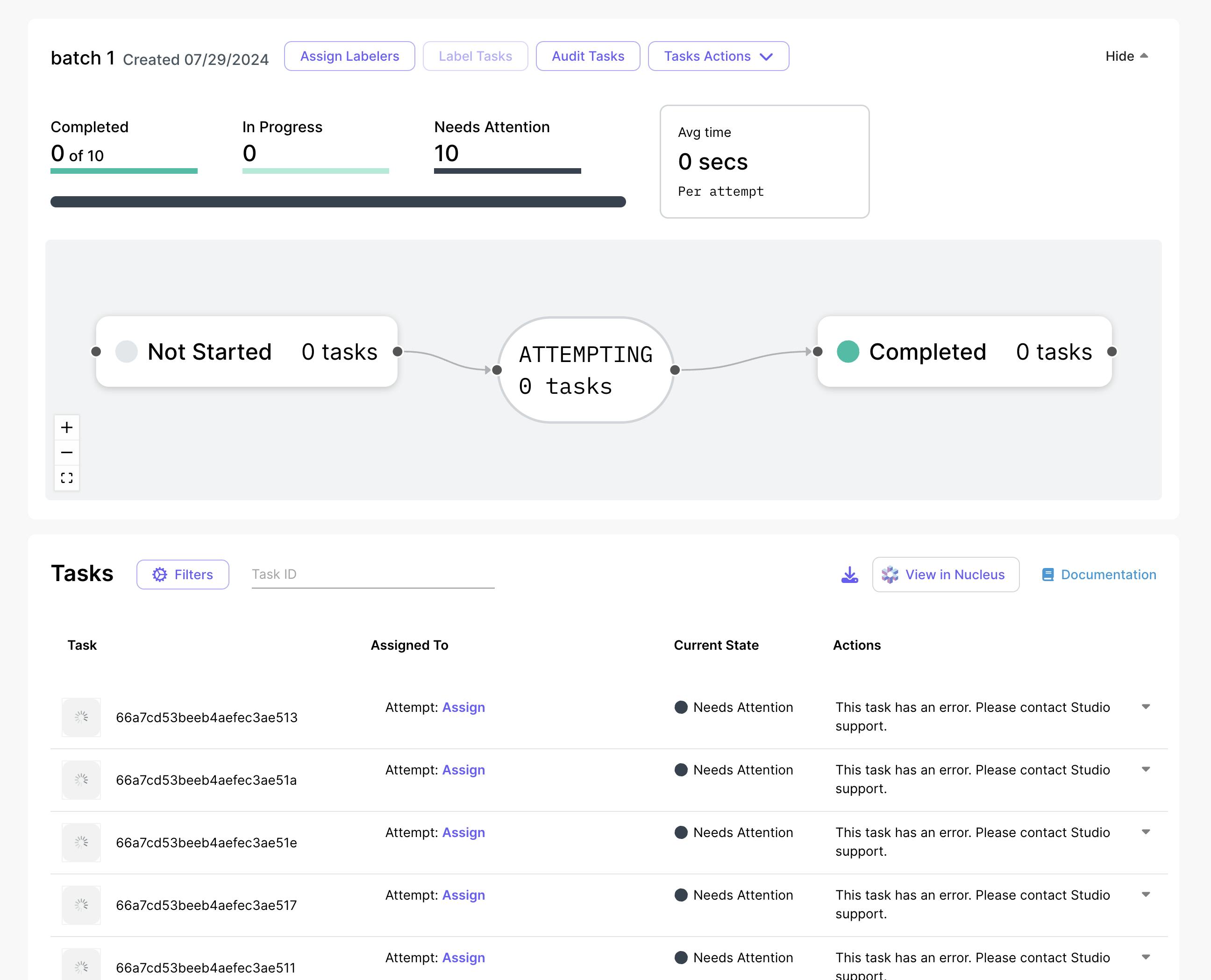 Once feedback from the calibration batch is received, the user analyzes the discrepancies and improves their instructions. During the auditing process, the user can use the labeled tasks to create examples embedded in the instructions and quality tasks to enhance the overall project setup.
