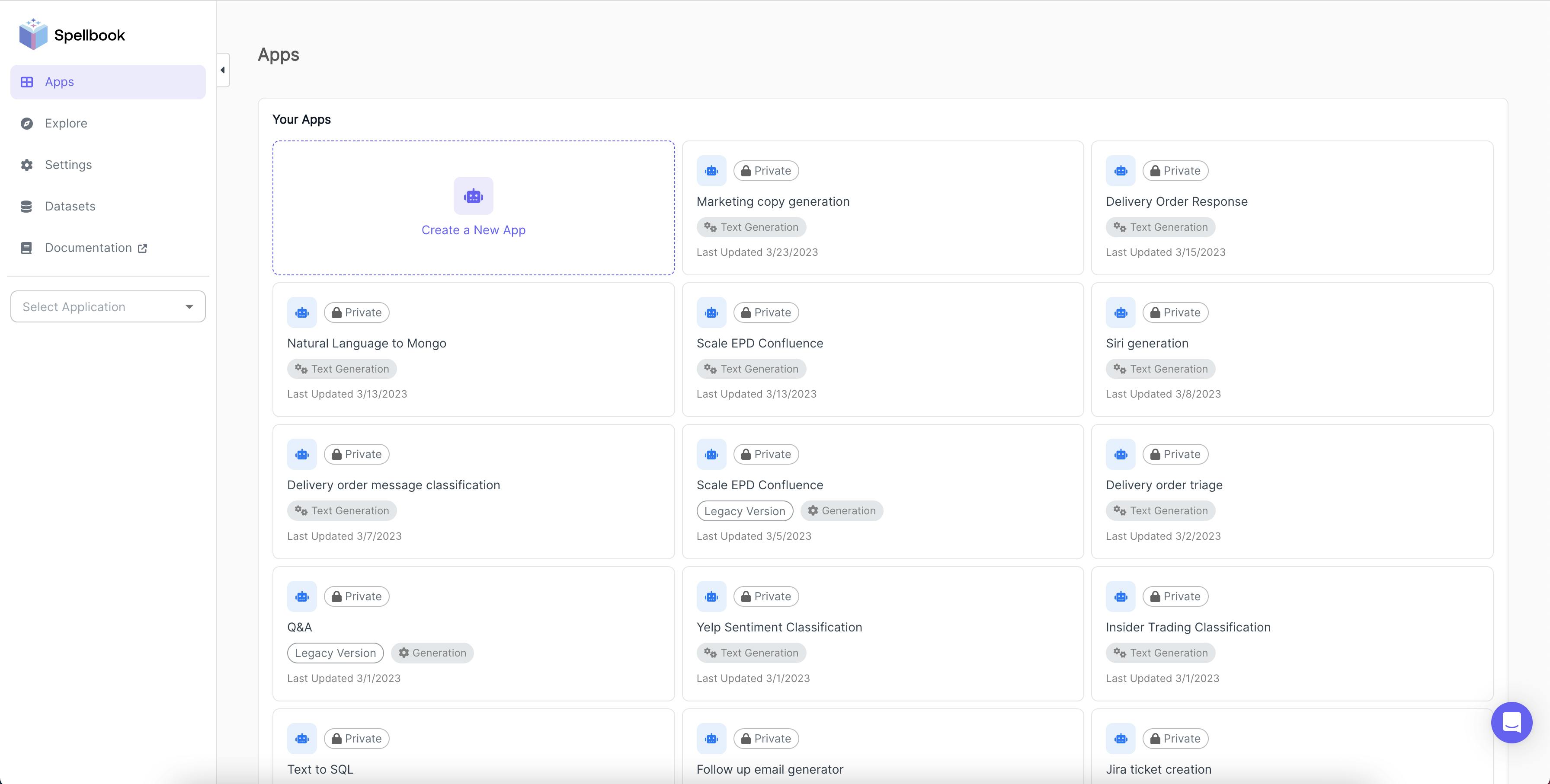 Scale Spellbook is Scale AI’s product intended for developers to build, compare, and deploy large language model apps. Spellbook was announced in November 2022. Its features include scaling CPU and GPU computing, managing model deployments and A/B testing, and monitoring real-time metrics such as uptime, latency, and performance. Spellbook also includes structured testing for ML models through regression tests and model comparisons.