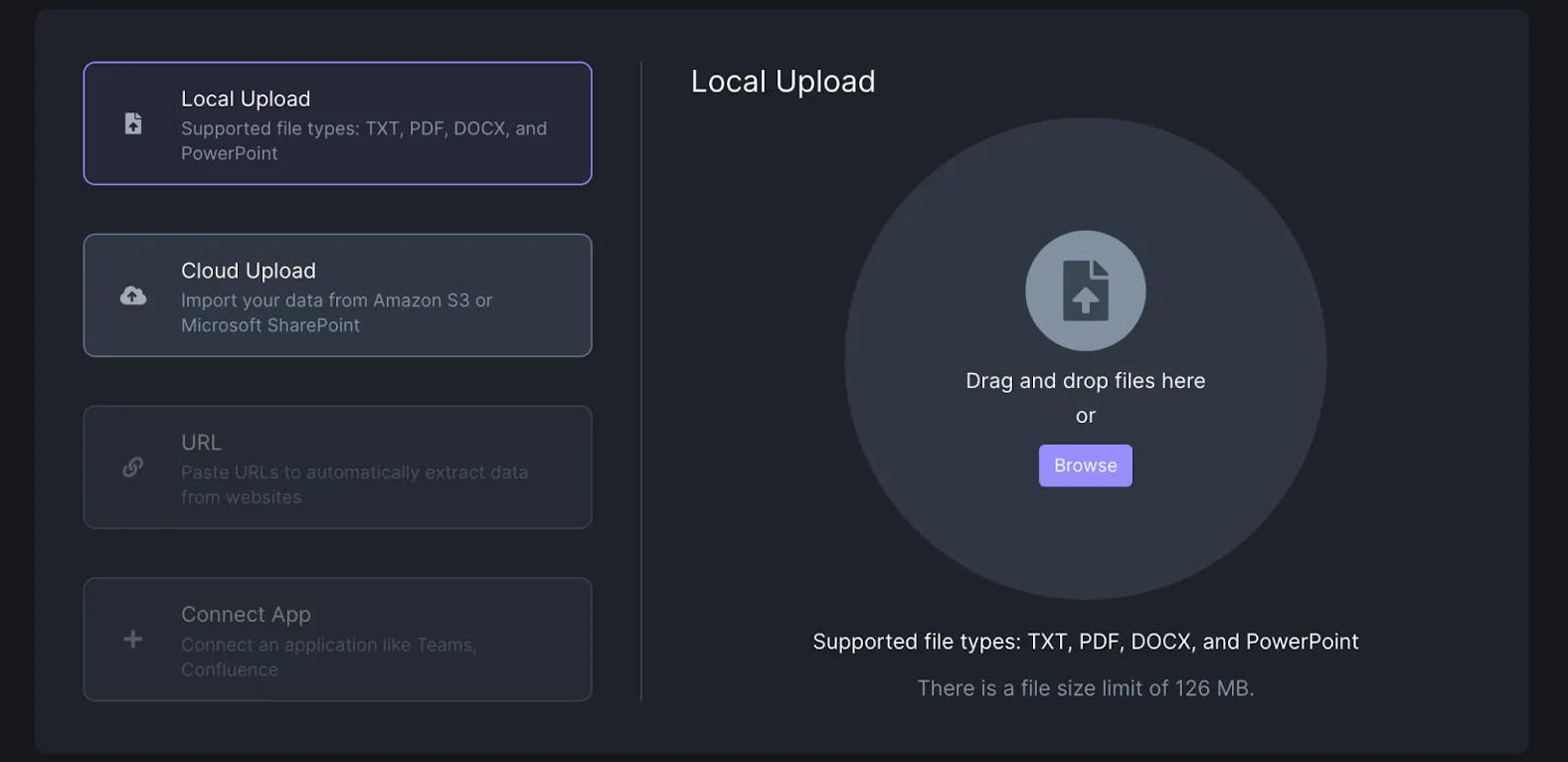 Upload Data: The user starts by uploading their data in any of the supported formats.