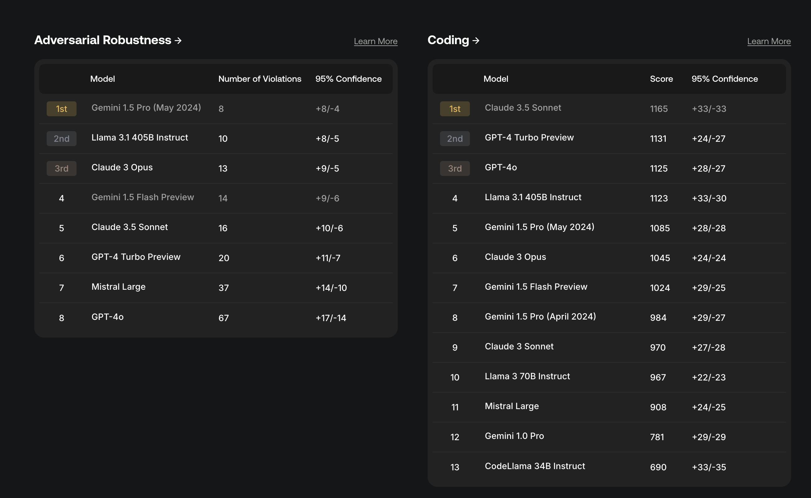Unlike most public benchmarks, Scale's leaderboards maintain integrity through private datasets and limited access to prevent gaming or overfitting. The platform also emphasizes transparency in its evaluation methods, providing insights beyond just rankings. Scale’s goal is to drive better evaluations and promote responsible AI development by continually updating leaderboards, expanding coverage to new domains, and working with trusted third-party organizations to ensure the quality and rigor of assessments.