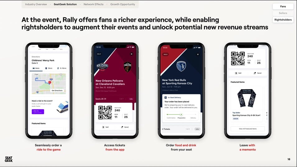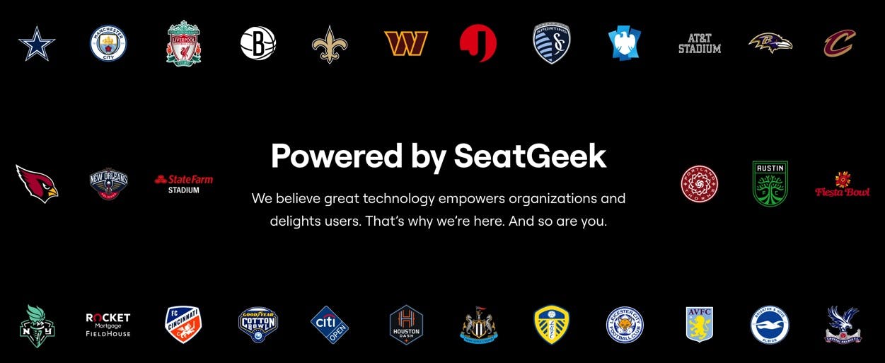 In addition to its consumer business, SeatGeek provides enterprise ticketing software that helps teams, venues, and promoters to grow their businesses and engage fans. SeatGeek customers not only leverage SeatGeek’s platform to distribute tickets but also gain access to SeatGeek’s data to expand their fan bases further. Contracts usually last between five to seven years. Some of SeatGeek’s notable enterprise customers include the MLB, the NFL’s Arizona Cardinals, Baltimore Ravens, Dallas Cowboys, New Orleans Saints, and Washington Commanders.