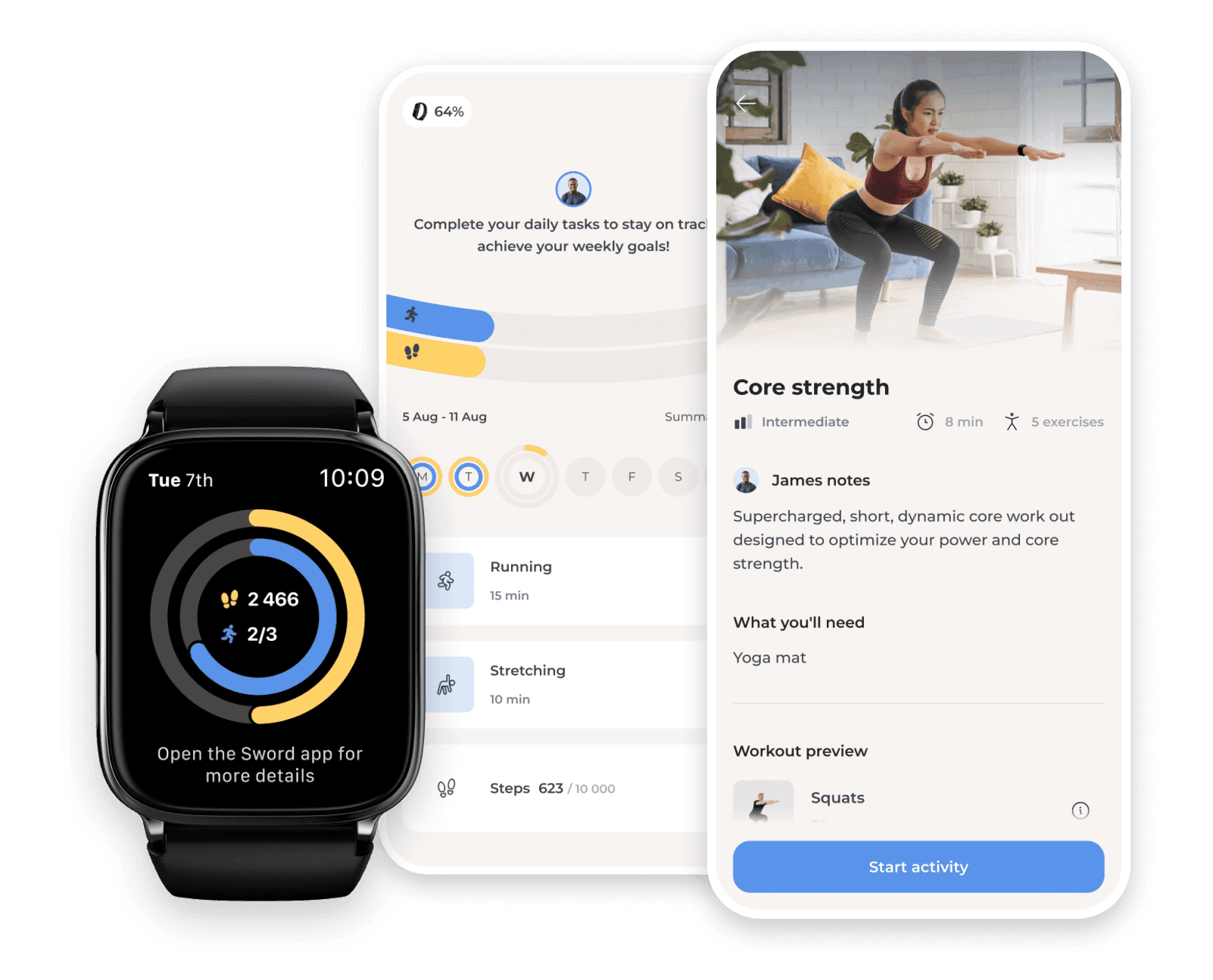 Move is Sword Health's movement health solution designed to help members initiate and maintain physical activity on their journey to living pain-free. Move integrates data from users' wearable devices with guidance from a dedicated personal trainer to deliver customized movement programs. Users receive a customized plan each week and are able to monitor their progress over time through Sword Health’s Move wearable device or their own Apple, Fitbit, or WearOS device. Users also have continuous access to and communication with their certified personal trainer, ensuring consistent engagement, support, and connection to their goals.