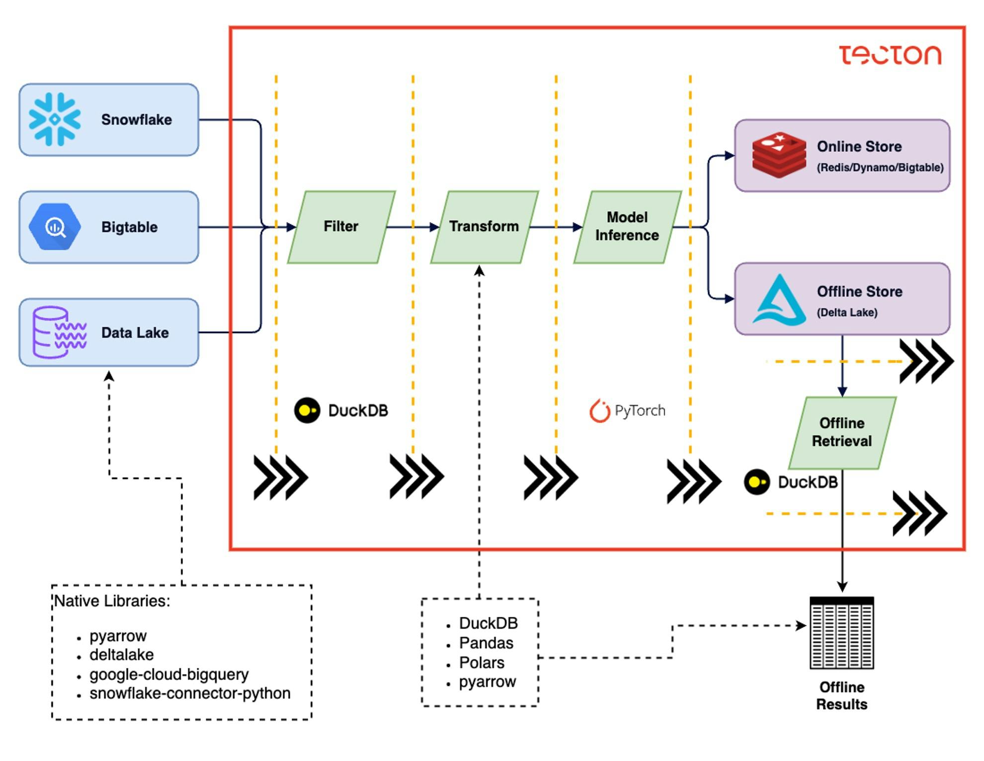 A notable innovation is Tecton's ability to abstract away the complexities of data processing engines. Whether using Spark for batch processing, Flink for streaming, or Tecton's own Rift engine for real-time computation, the feature definitions remain consistent. This abstraction layer greatly reduces the engineering effort required to deploy ML features into production.