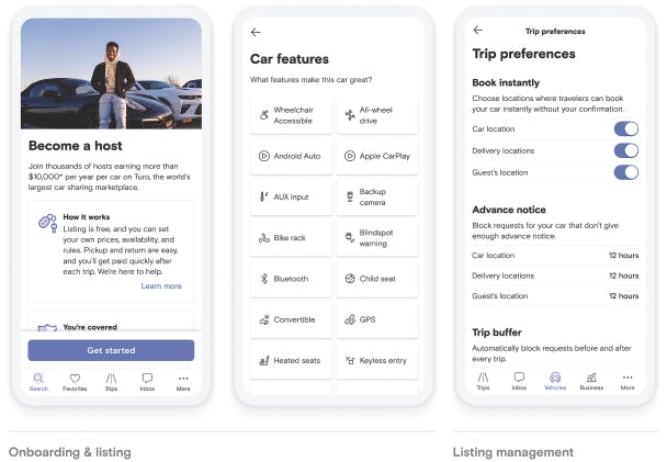The platform is designed to make it simple for an owner to sign-up, verify their account, and create a listing. Turo enables hosts to manage their listing, availability calendar and settings, messaging, pricing and trip settings, remote and in-person check-in and checkout options, earnings payments, and post-trip incidental payments. Additionally, hosts can offer various pick-up and drop-off locations. They can also offer optional “extras” such as unlimited mileage, pre-paid refueling, bike and ski racks, camping equipment, and more.
