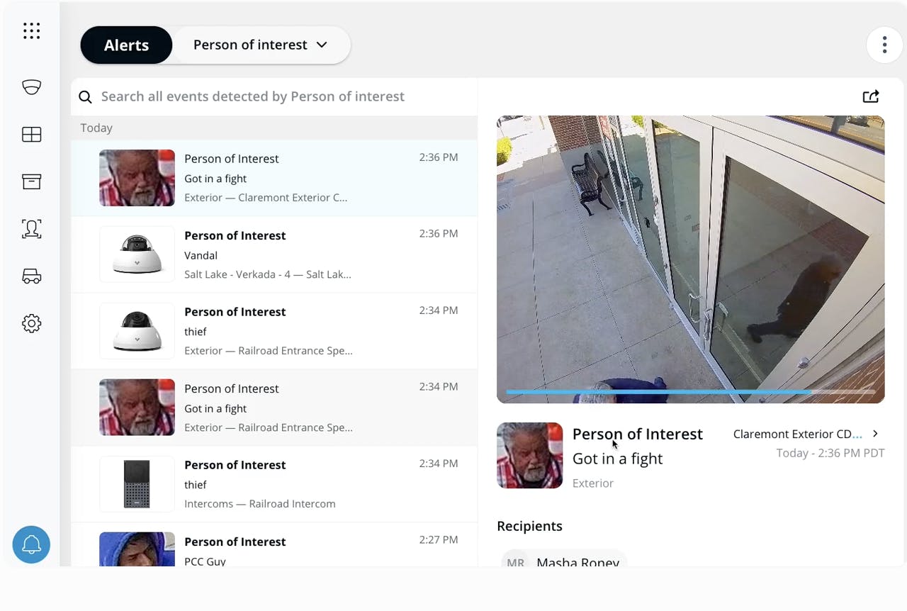 Monitoring: Verkada offers a monitoring service with operators evaluating live footage where customers can determine the areas to cover, arm/disarm schedule, and how operators should respond to potential threats.
