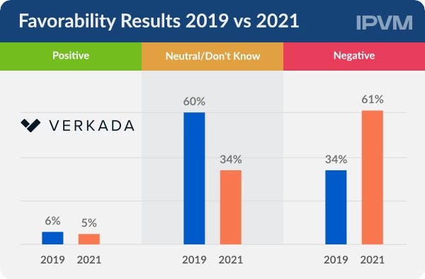 A 2021 survey of over 200 security system integrators, who are specialized professionals with domain expertise in designing, installing, and maintaining security solutions for clients, found these respondents had an overwhelmingly negative opinion of Verkada. As companies become more aware of the potential downsides of vendor lock-in, they may increasingly seek solutions that offer greater flexibility and avoid over-reliance on a single provider. Customers who are concerned about vendor lock-in may be hesitant to commit to Verkada's platform, fearing that they will be unable to easily switch to alternative solutions if their needs change or if they become dissatisfied with Verkada's offerings.