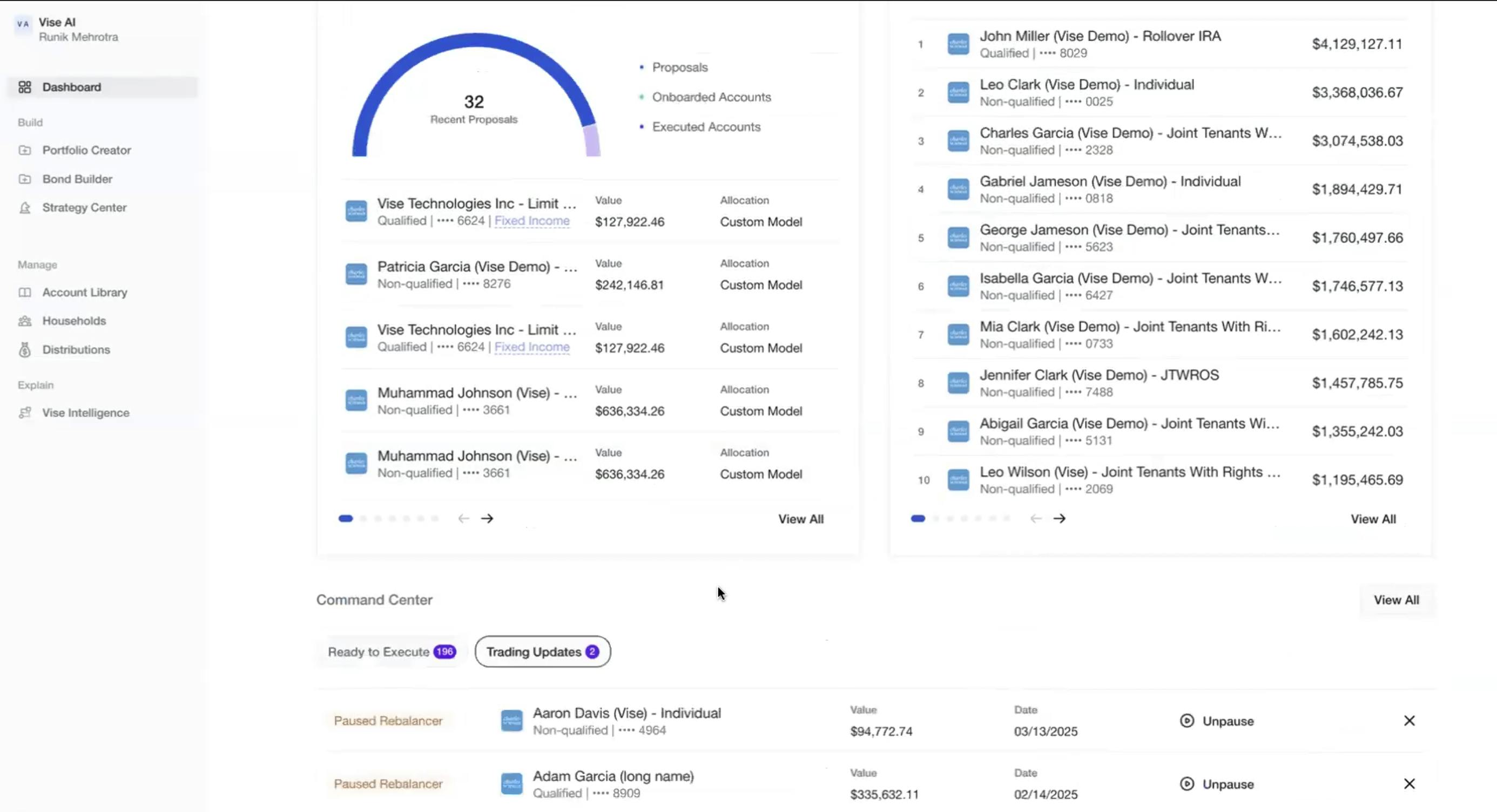 Vise is built to help enterprise RIAs preserve the advisor-client relationship while driving platform-wide efficiency. By automating personalized portfolio construction at scale with built-in tax management, compliance alignment, and customization levers Vise allows consolidators to streamline operations without sacrificing personalization. As M&A activity accelerates, platforms that can bridge the gap between individual advisor autonomy and centralized control will become indispensable.