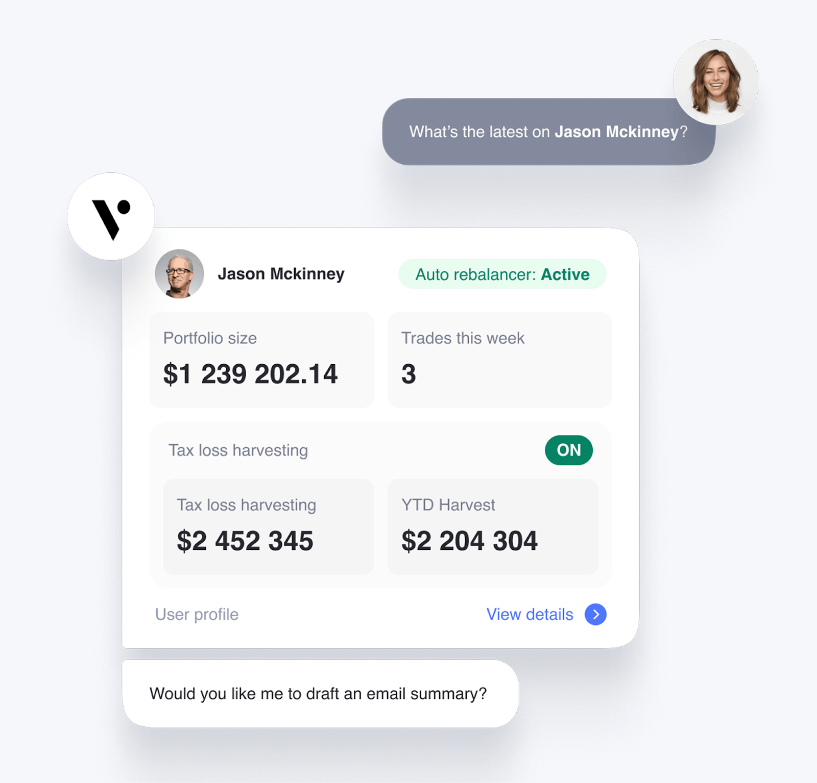 Explain leverages thousands of client data points to deliver performance insights, simplify complex trading decisions into more clear narratives, and create personalized reports that show how a Vise-managed portfolio can benefit each investor by leveraging AI. Vise Intelligence is the company’s proprietary AI engine built on large language models (LLMs). It transforms data into actionable insights, and streamlines day-to-day workflows. The goal of the product is to give advisors more time to focus on serving clients and growing their business.