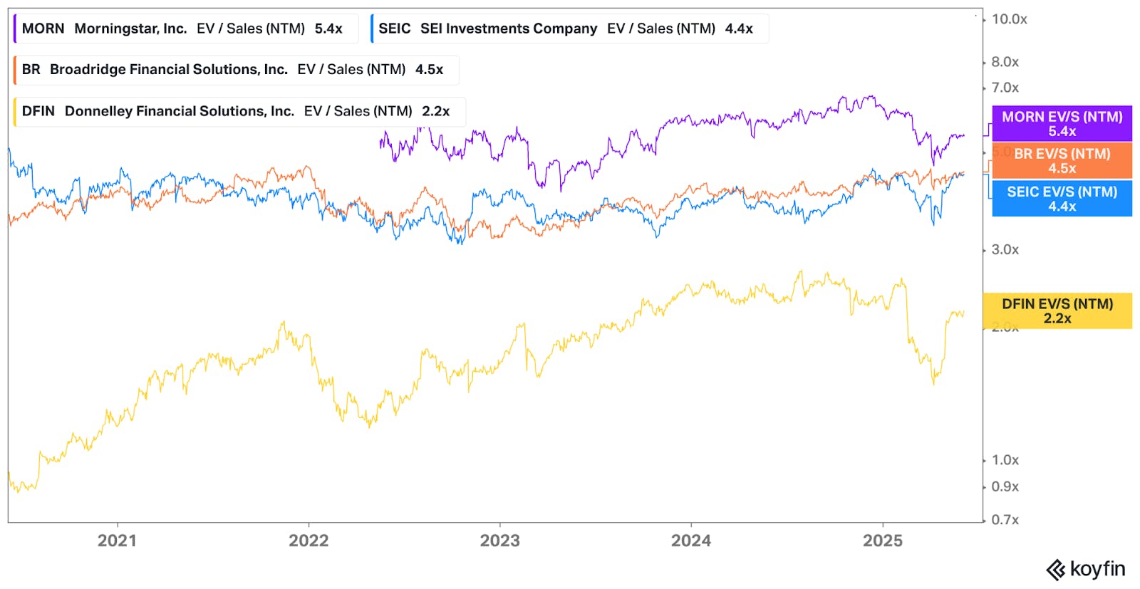 There are a variety of comparable businesses in the broader wealth advisory space, from public companies like Morningstar and Charles Schwab, with market caps of $13.1 billion and $159.1 billion respectively as of June 2025, to private equity owned businesses, like Envestnet, which was acquired by Bain Capital for $4.5 billion in November 2024. As of June 2025, comparable businesses were trading at a range from 2.2-5.4x revenue depending on variables like scale, consistency, and tech-enabled growth. The higher the growth, the higher the multiple a particular company can command.