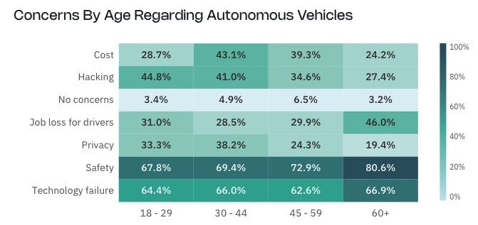 This bears true in the automated transportation space, both for ride-sharing customers and private vehicle owners. Ride-sharing customers in cities with driverless taxis were willing to pay over $10 more for driverless vehicle rides than for a Lyft or Uber during peak demand periods as of June 2025. In January 2024, 65% of vehicle owners said they’d want their car to be autonomous within the next 10 years if proven safe, and 78% would pay $5K or more for an autonomous car than a traditional vehicle.