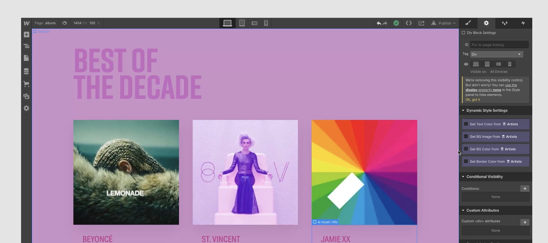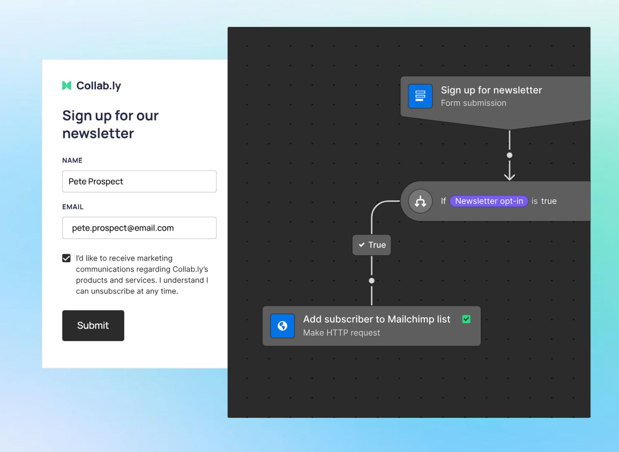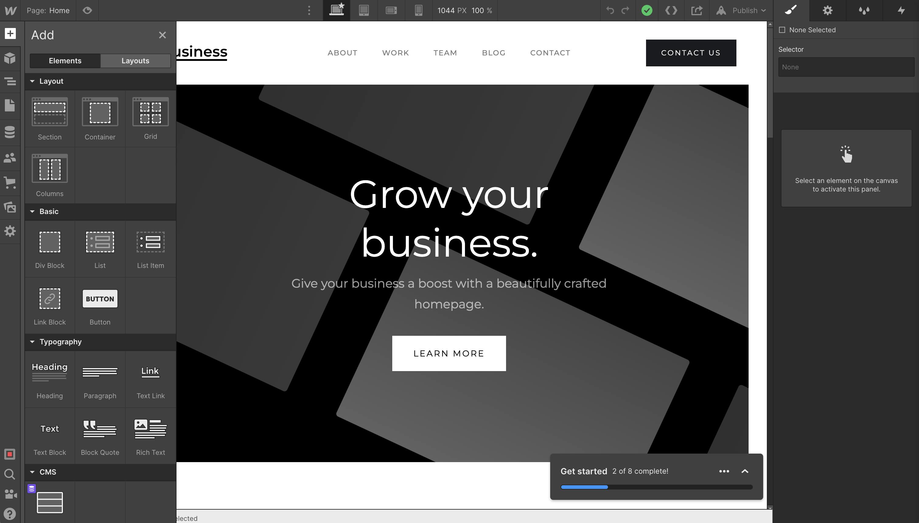 Webflow’s Logic feature lets designers automate functions within their websites. This feature helps users collect leads, lets viewers upload their own content, and offers more live interaction with sites. The early versions of the product do support webhooks, hinting at a Zapier-like experience within Webflow someday.