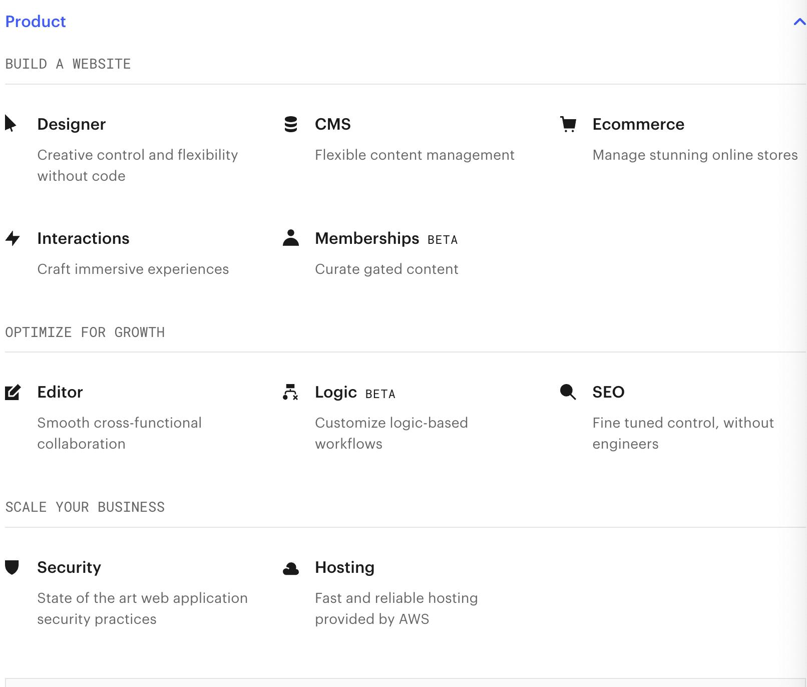 As one of the earlier players in the space, Webflow’s no-code website solutions may challenge Wordpress’ longstanding position as the primary website-building solution for technical designers, agencies, and enterprise customers. Unlike Wix and Shopify, which have fully abstract HTML elements, Webflow’s no-code website builder helps designers build websites with true, semantic HTML, dragging real div elements and styling with flex-box. The company also provides a content management system (CMS) for large blogging or e-commerce sites. It also offers team management meant to enable handoff to clients or allow for scale alongside large enterprises. However, performant sites come at a cost, with some describing Webflow’s learning curve as steep. As both low-code and no-code startups enter the market, Webflow will have to balance competing prerogatives including ease of use, functionality, and pricing.