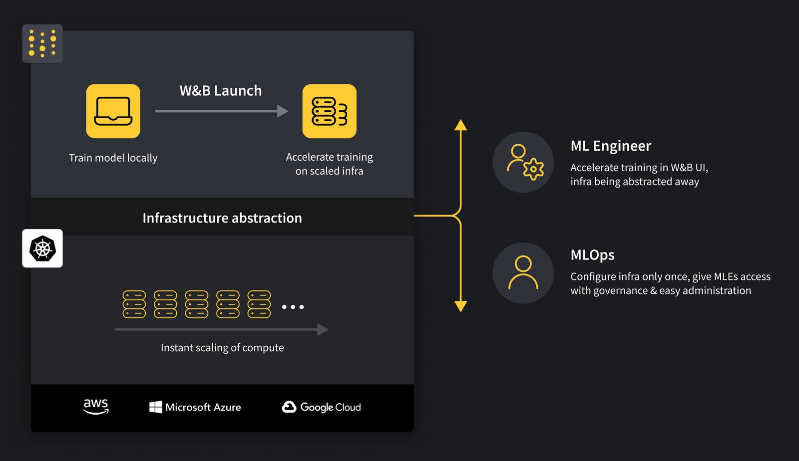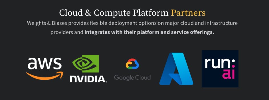 Large enterprise customers often demand a high level of security, so W&B supports all major cloud, on-prem, and hybrid deployment models. The platform offers robust identity and access management, security and compliance monitoring, and integrations to cloud security services.