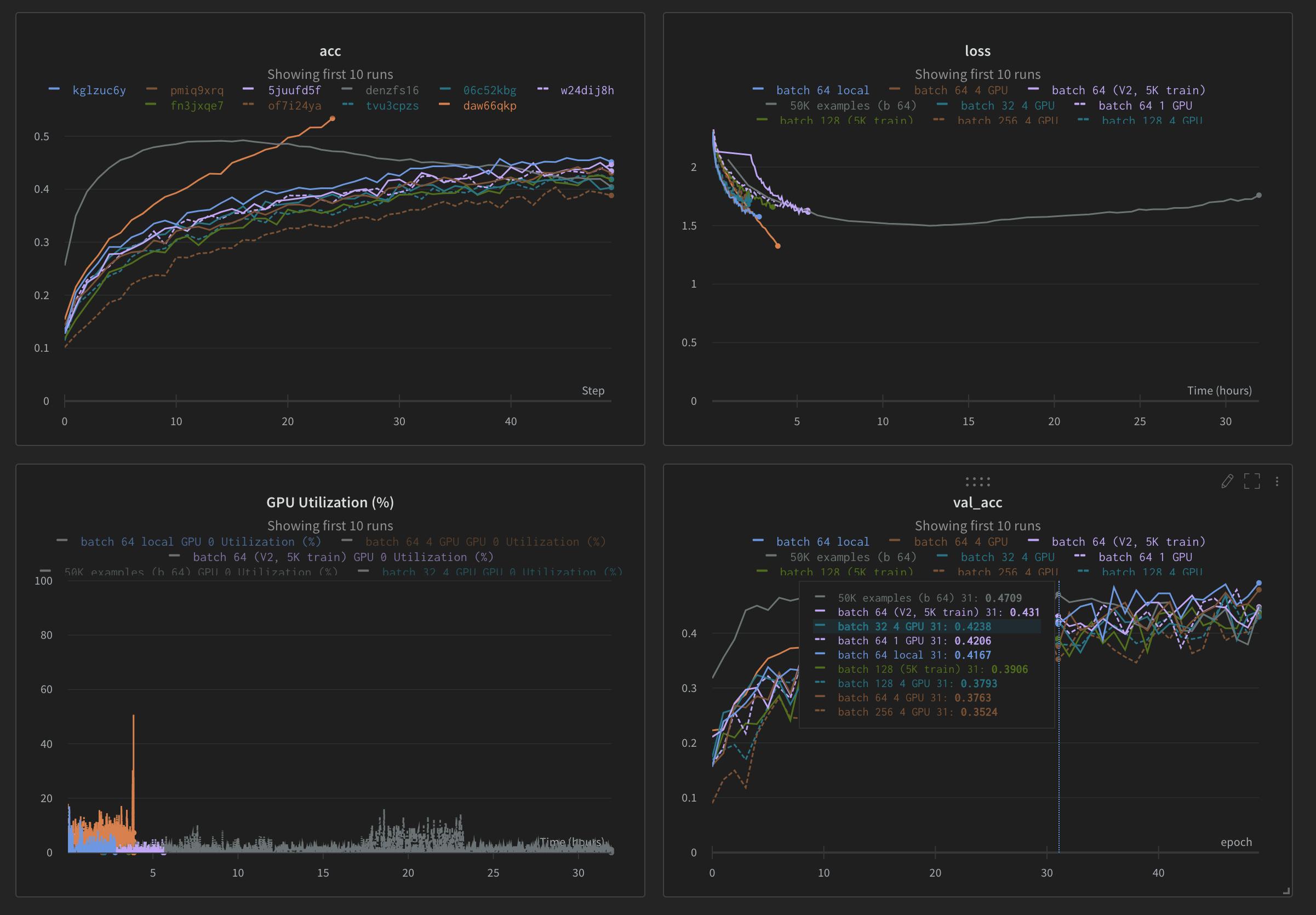 W&B’s experiment tracking also allows for easy version control, enabling users to quickly find and re-run previous model checkpoints. CPU and GPU usage can also be monitored to identify training bottlenecks and avoid wasting expensive resources. Dataset versioning is also supported where users can automatically version logged datasets, with diffing and deduplication handled by Weights & Biases, behind the scenes.
