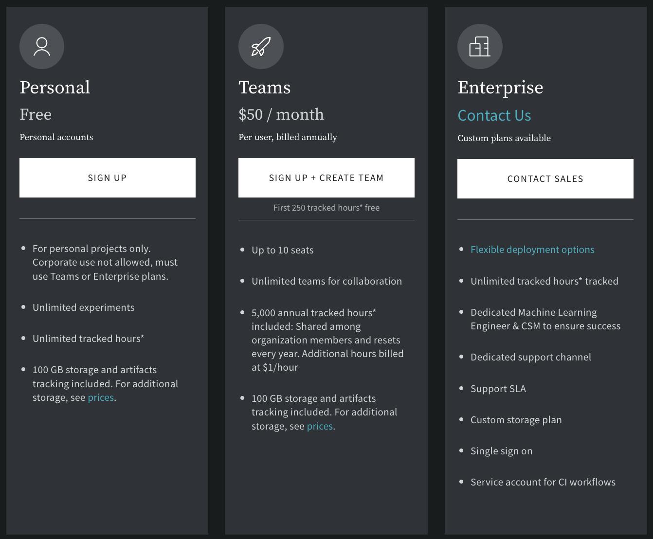 W&B has a subscription-based revenue model. It offers both cloud-hosted and private hosting configurations. For both of those configurations, a personal account is free. There is a cloud-hosted “Teams” tier that is $50/month/user, billed annually, which supports up to 10 seats. Beyond that, both configurations have an “Enterprise” tier. Pricing is not disclosed publicly for that tier. The Enterprise tier allows users to install W&B locally on their own servers so that sensitive data does not have to leave the system.