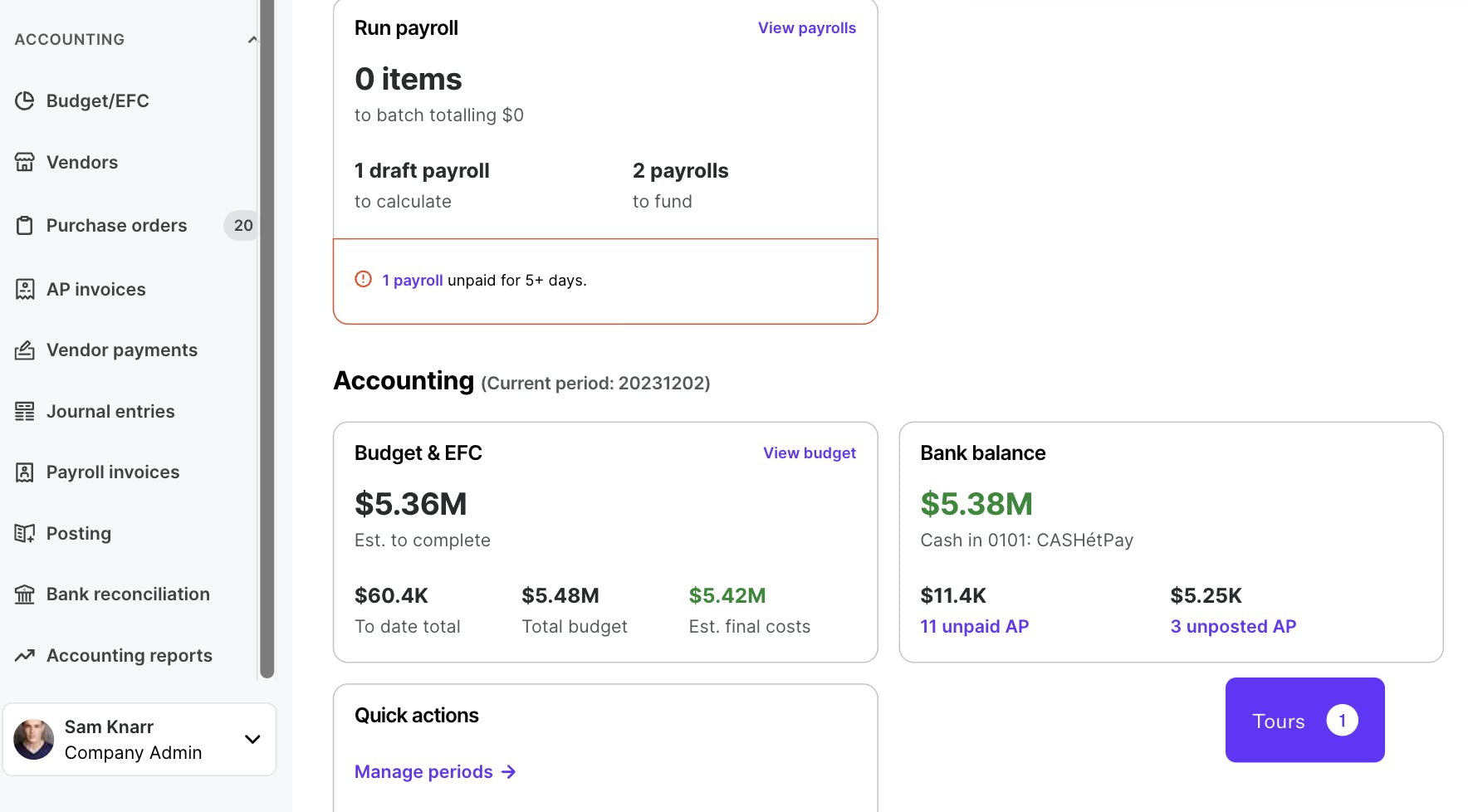 Time card integration: Time cards and expenses are automatically coded to their respective budget line numbers, allowing customers to see real-time budget impacts when payroll is run.